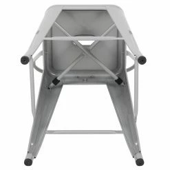 Sturdy metal with a protective powder coat is available in a full range of finish options – it’s going to be tough to choose just one (in fact, maybe you should choose two or three). The curved back with a vertical slat sets a bold scene, while a drain hole in the seat and a cross brace underneath, provide smart design. Protective rubber feet help prevent scratching, and for optimal longevity, the stool should not be exposed to wet weather for long periods.