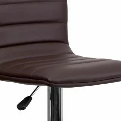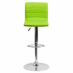 Streamlined, sleek, and versatile, the Flash Furniture Contemporary Horizontal Line Design Adjustable Bar Stool with Chrome Base is a perfect seating option for your home bar or counter. This stool features a comfortable swiveling seat with gas-lift height adjustment. Easy-clean vinyl upholstery comes in a variety of color options and features horizontal stitching for detail. Its chromed disk base includes a built-in footrest for stylish comfort.