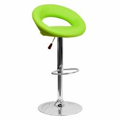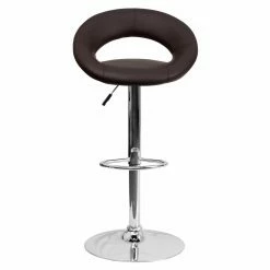 Mod style and comfort come home with the Flash Furniture Contemporary Round-Orbit Design Adjustable Bar Stool with Chrome Base. A sleek seat with integrated backrest offer a swiveling feature and easy gas-lift height adjustment. Perfect for the home bar or eat-at kitchen counter! This stool stands on a polished chrome base with built-in footrest. The vinyl upholstery comes in a wide variety of color options.