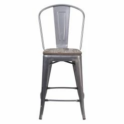 The Flash Furniture Industrial Splat Back 24 in. Wooden Seat Counter Stool brings together the quaint touch of French provincialism and an edgy splash of French minimalism. This bistro-style counter-height stool boasts a galvanized steel and wood construction that brings to mind a twentieth-century, clean-lined rustic-urban appeal. Along with the wooden seat and footrest bracing, the vertical splat back is also curved to establish a comfortable, stable stool for you and your guests. And your choice of available color options guarantees that youβll find a look that fits seamlessly with their surrounding dΓ©cor.