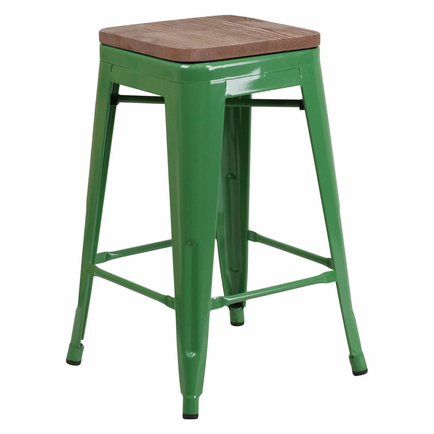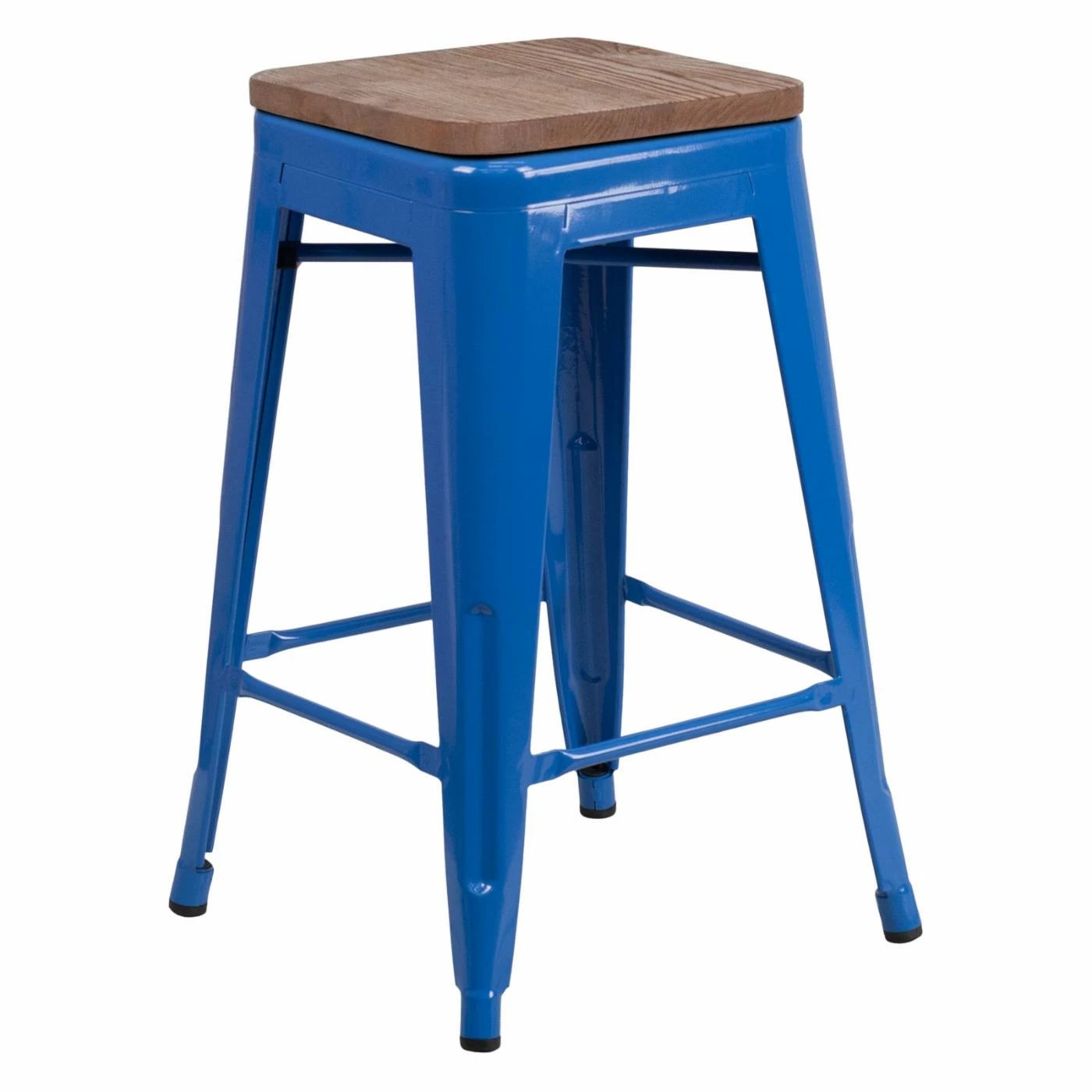 Easy come, easy go – the Flash Furniture Metal Backless 24 in. Wooden Seat Counter Stool makes quick meals a cinch. This counter-height stool is an ideal addition to your kitchenβs breakfast counter, serving window, or island, making even quick meals feel planned and homey. The armless, backless style offers superior access and mobility, while the cross braces, footrests, and wooden seat add comfortable, attractive accents. Your choice of available color options means that theyβre sure to mix seamlessly with surrounding dΓ©cor. The galvanized steel and wood construction create a high-quality seat suitable for commercial or residential use.