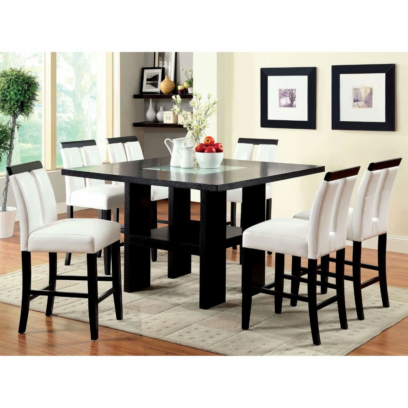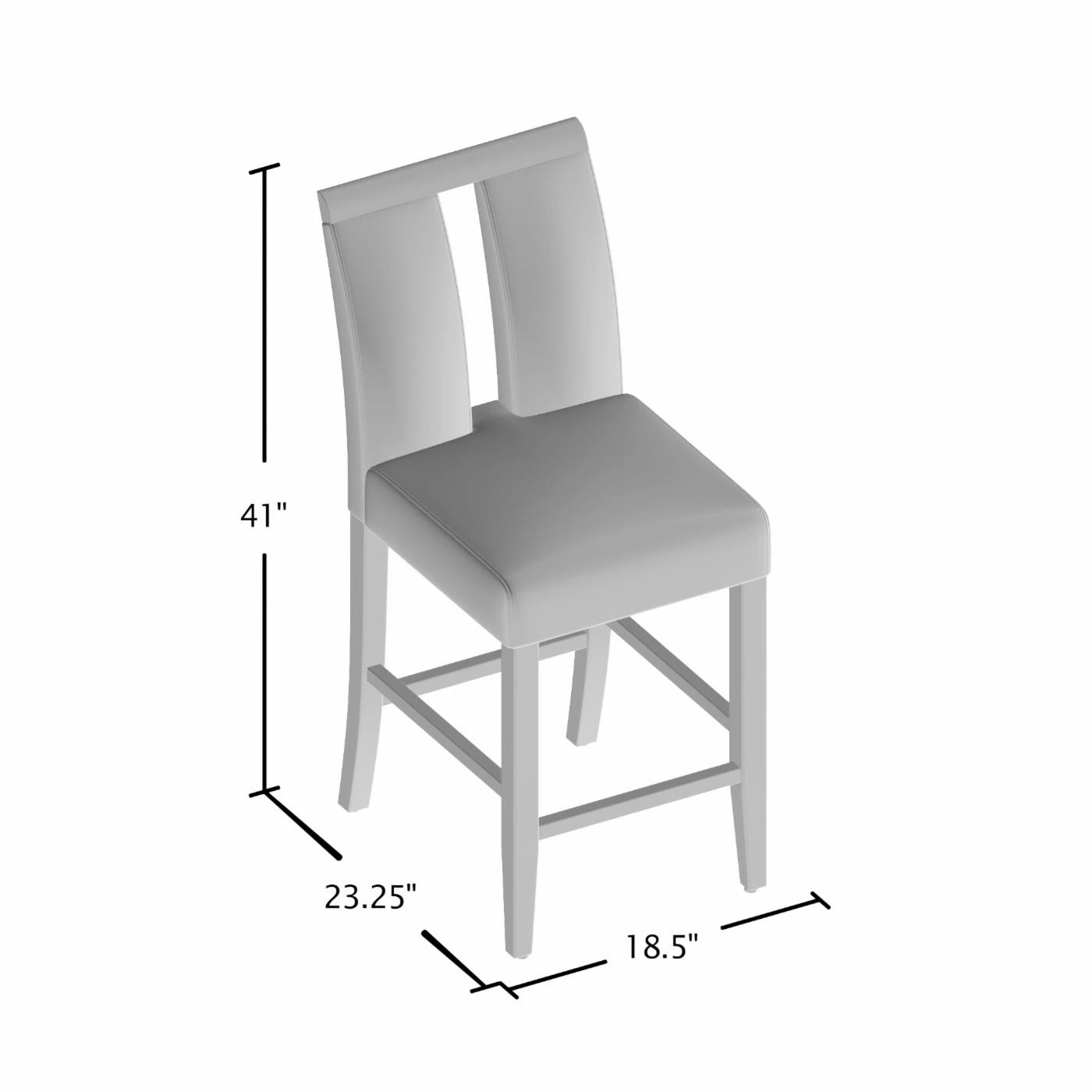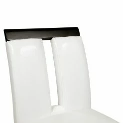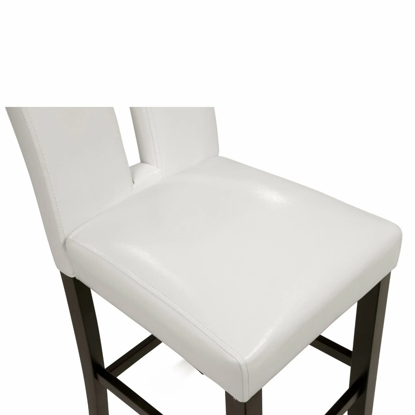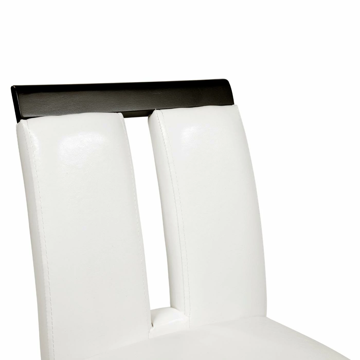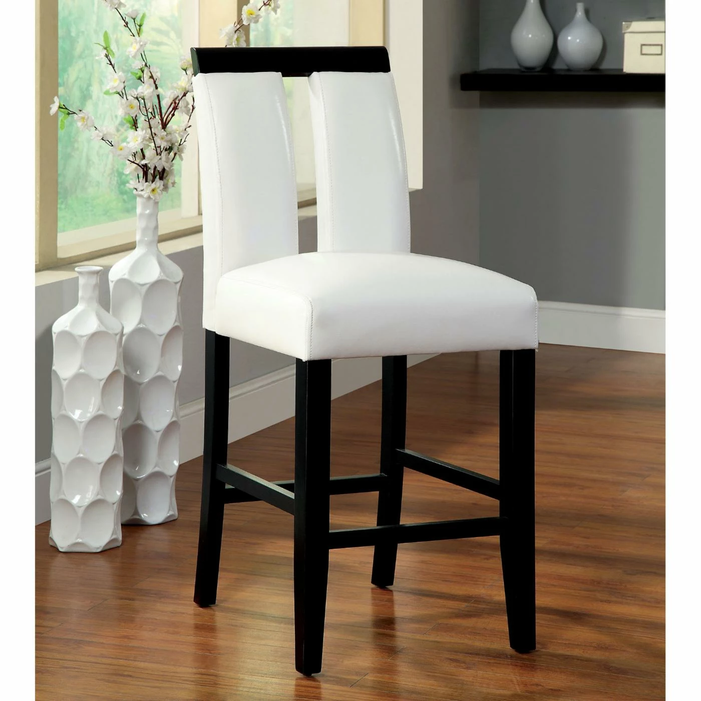 Give your table an updated look with the Furniture of AmericaΒ Luminate Contemporary Counter Height Chairs – Set of 2. These contemporary pub chairs flaunt a decorative keyhole design crafted from hardwood and veneer finished in sleek black with padded white leatherette upholstery that looks great and feels even better.