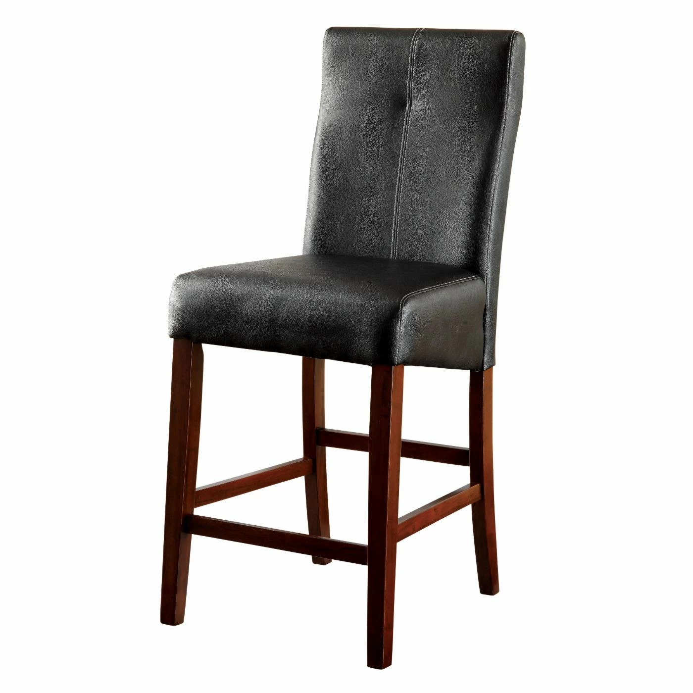 The Furniture of America Marcson Counter Height Fully Upholstered Dining Chair – Set of 2 is an exciting addition to your private pub, kitchen counter, or exceedingly tall dining room table. This exquisitely crafted chair is pieced together from solid wood and natural grain veneer and resembles a classic Parsons but with an angled back and black leatherette upholstery.