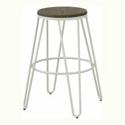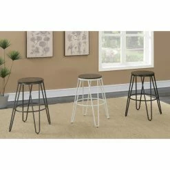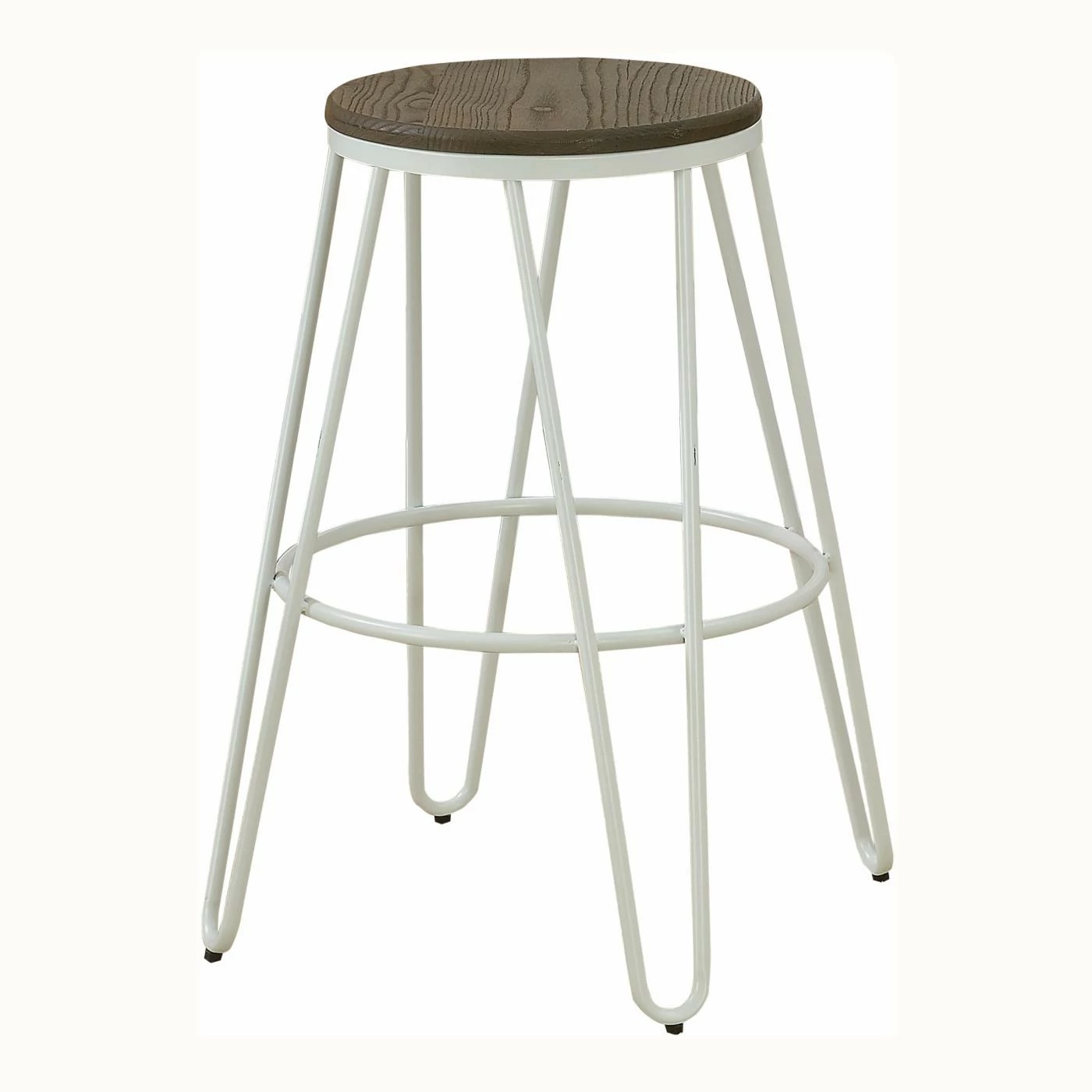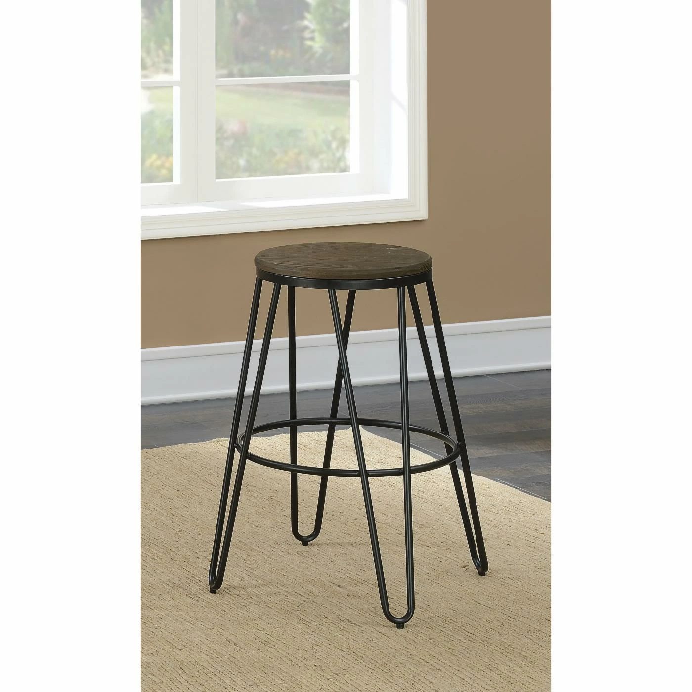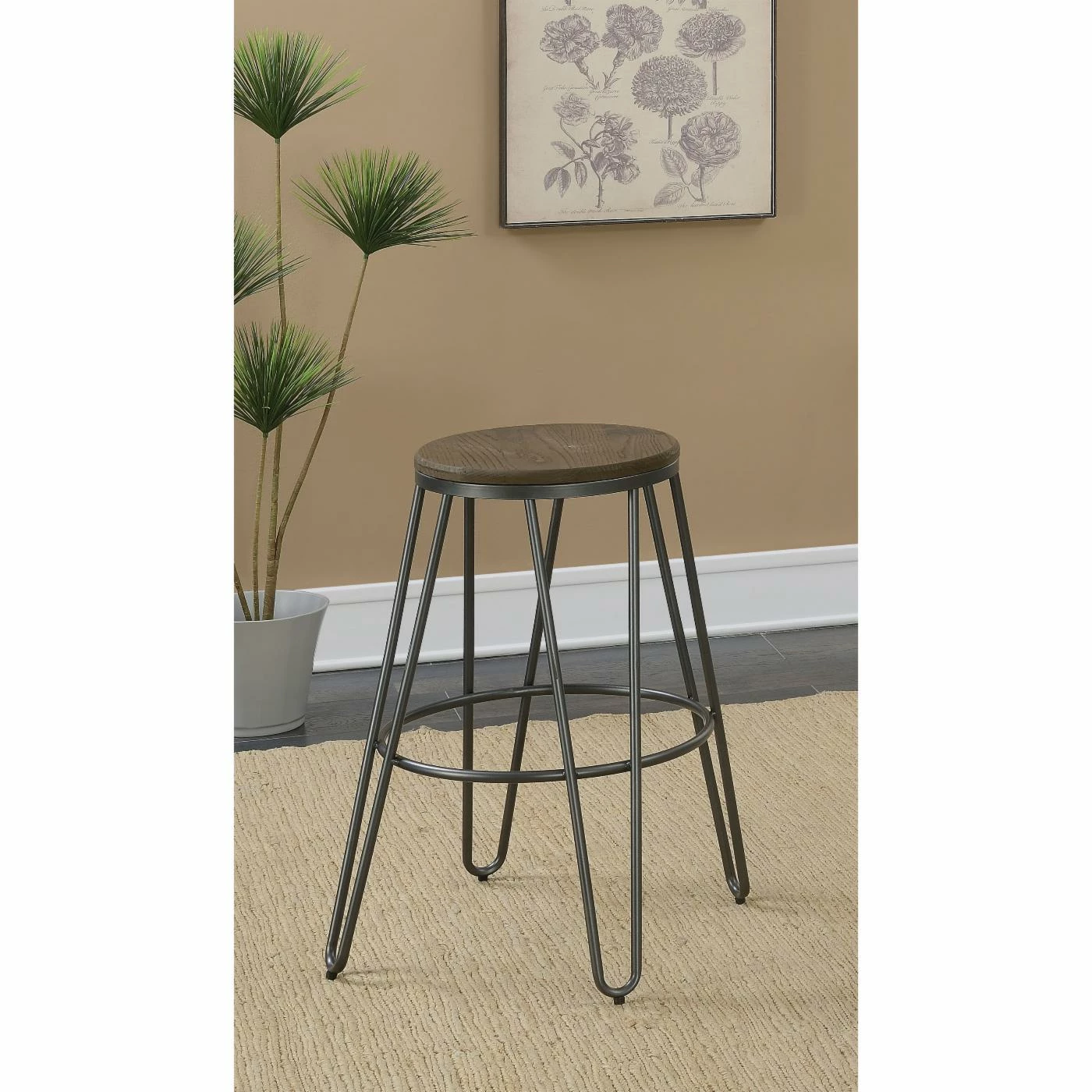 Provide a refined, rustic complement for your new pub-height table or counter with the Furniture of America Tailor Industrial 26 in. Metal Bar Stool – Set of 2. Two matching backless stools are included in this set. Steel hairpin legs support the piece, bolstered by a ring footrest. The round seat is made from thick wood. Choose from the available finishes.