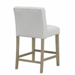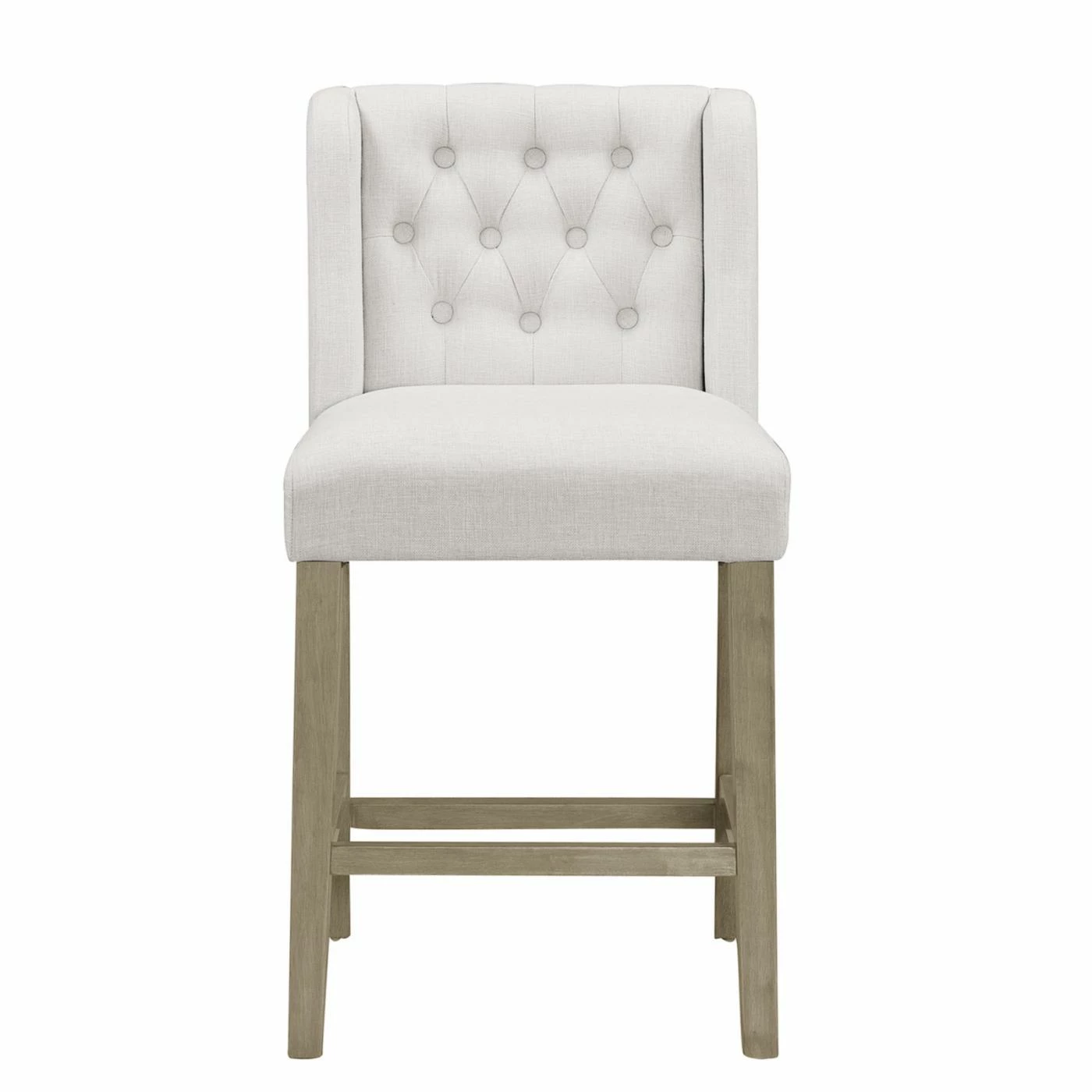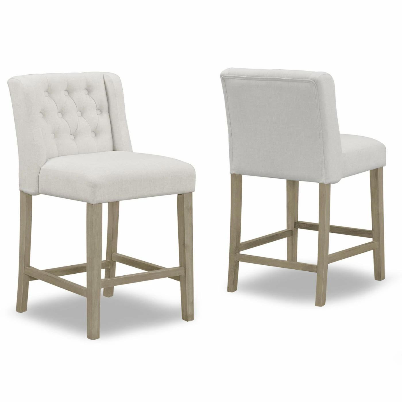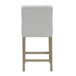 With side wings for extra body support and a 5.25-inch thick cushion, the Glamour Home Aled Fabric Counter Stool with Side Wings and Tufted Buttons – Set of 2 is a comfortable and stylish way to expand your traditional dining seat options. The stools are crafted of durable rubber wood in an antique brown finish. The built-in footrest is located at the perfect height on the counter stools. The beige fabric upholstery may be spot cleaned on the stools. The counter stools are designed for residential use and require some basic assembly.