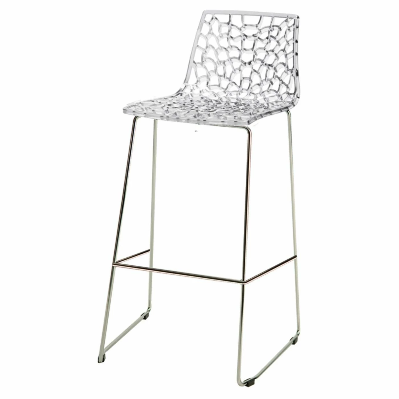 Friends, family, and good times are just around the corner with the Grandsoleil Upon Spider Fix Counter Height Bar Stool. A round, chrome steel base supports an intricately designed seat and back with a spiderweb-inspired cutout pattern β a striking accent to your bar or casual entertaining area. Each chair is 100% PAH- and toxin-free and scratch-resistant. Comes in your choice of color.