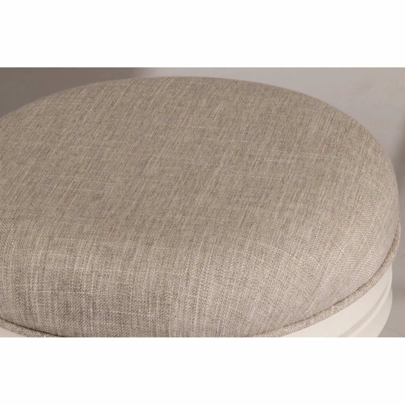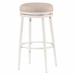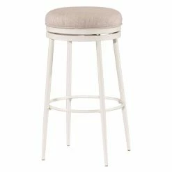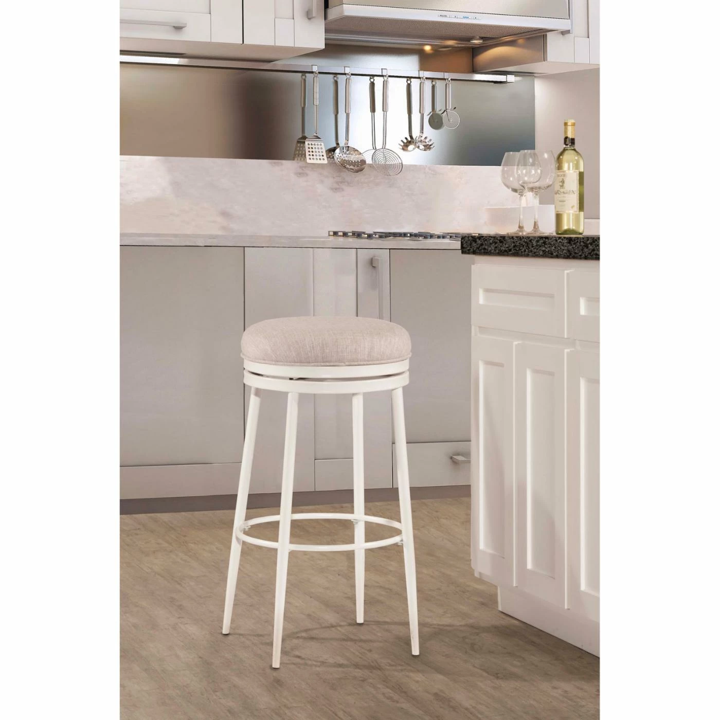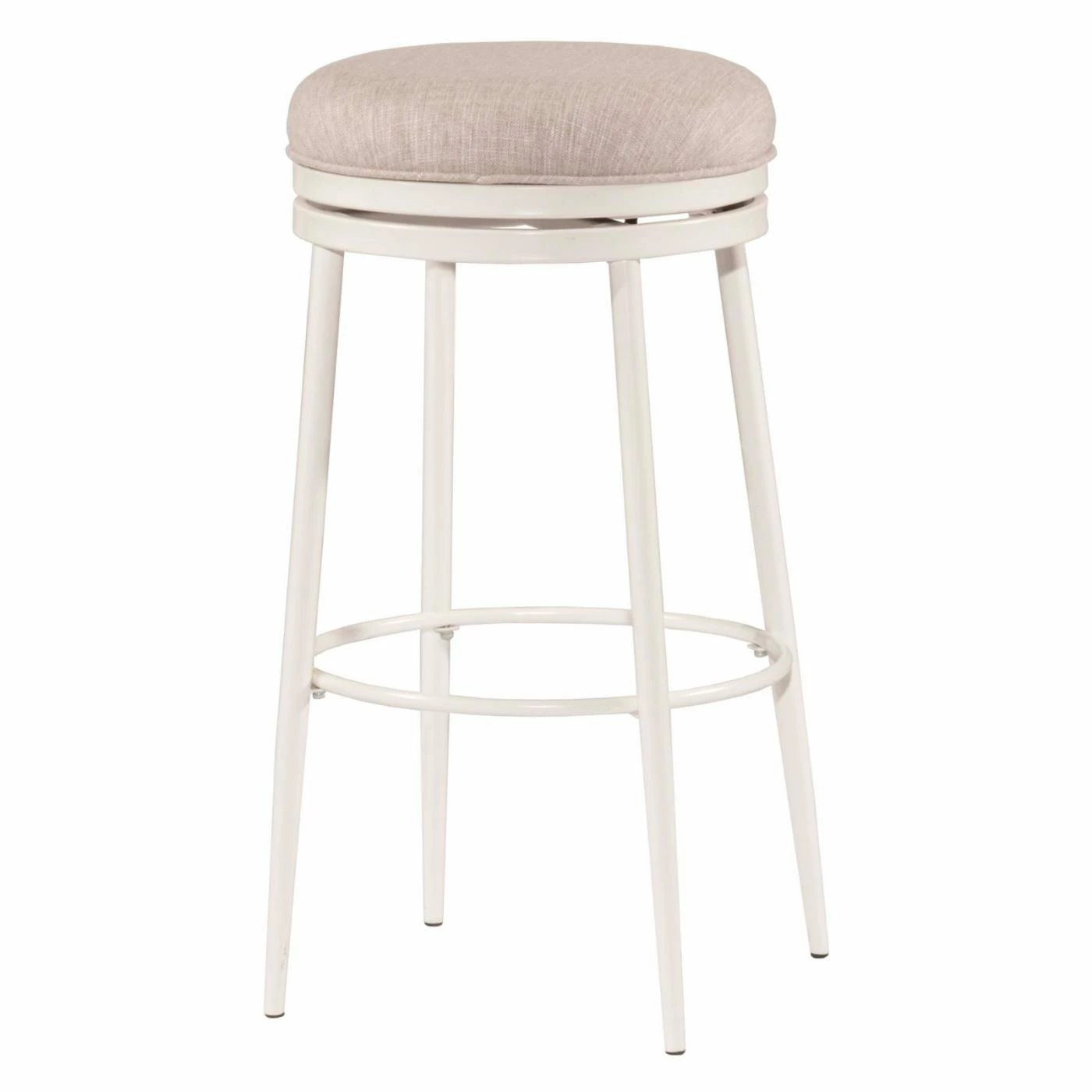 Perfect for your kitchen counter or bar area, the Hillsdale Aubrie Swivel Backless Counter Stool offers casual comfort in style. Constructed of heavy gauge metal, this durable counter stool features plush fabric upholstery and a classic off-white finish. Its backless design and 360-degree swiveling seat ensures this counter stool will make conversations easy.