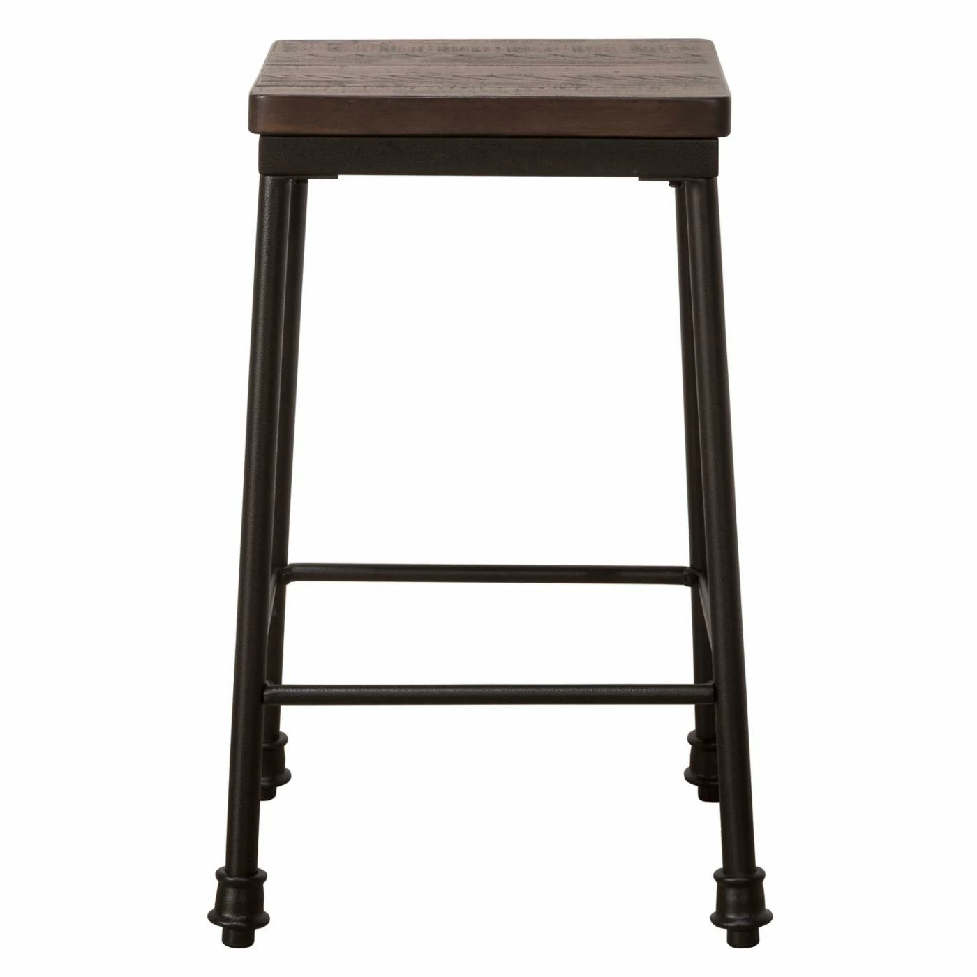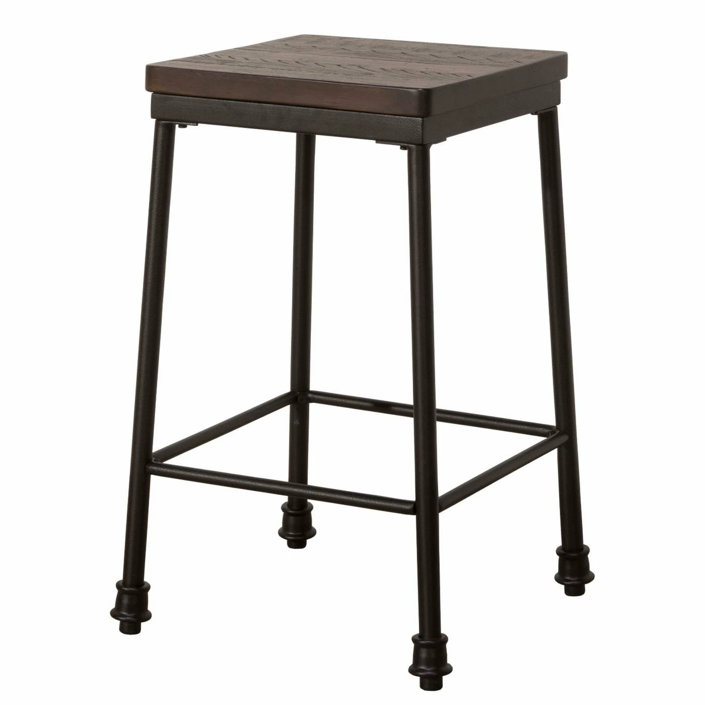 Sweet and simple, the Hillsdale Castille Backless Counter Stool makes the perfect addition to any room. The heavy gauge metal construction of this counter stool features a black finish. Its walnut finished wooden seat offers a backless design that is non-swiveling.