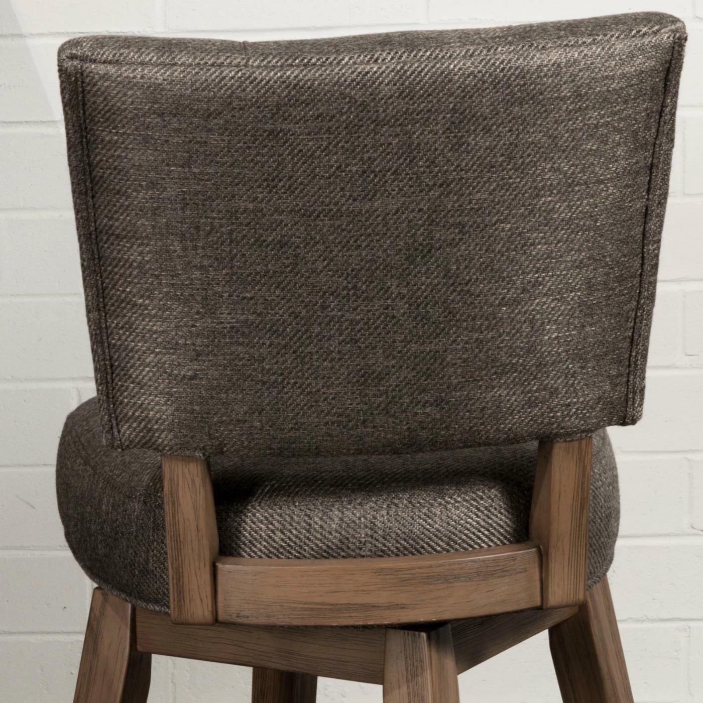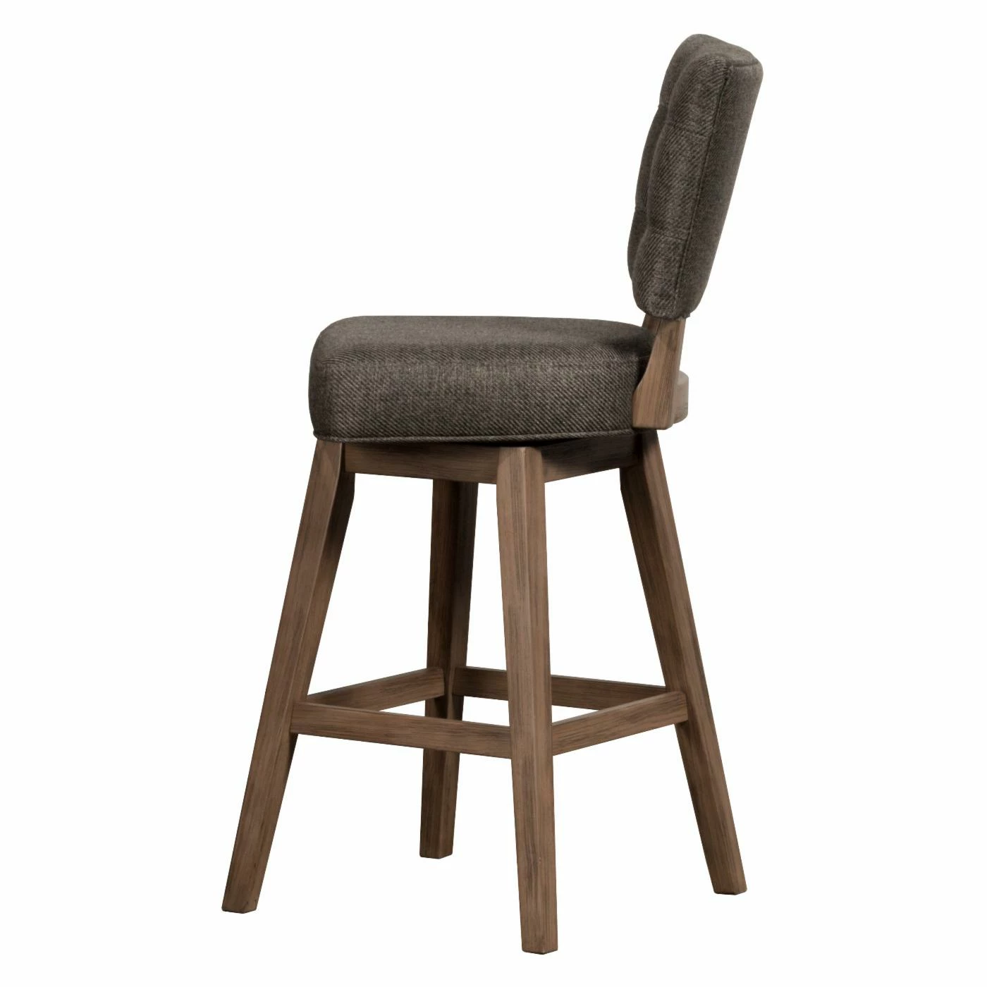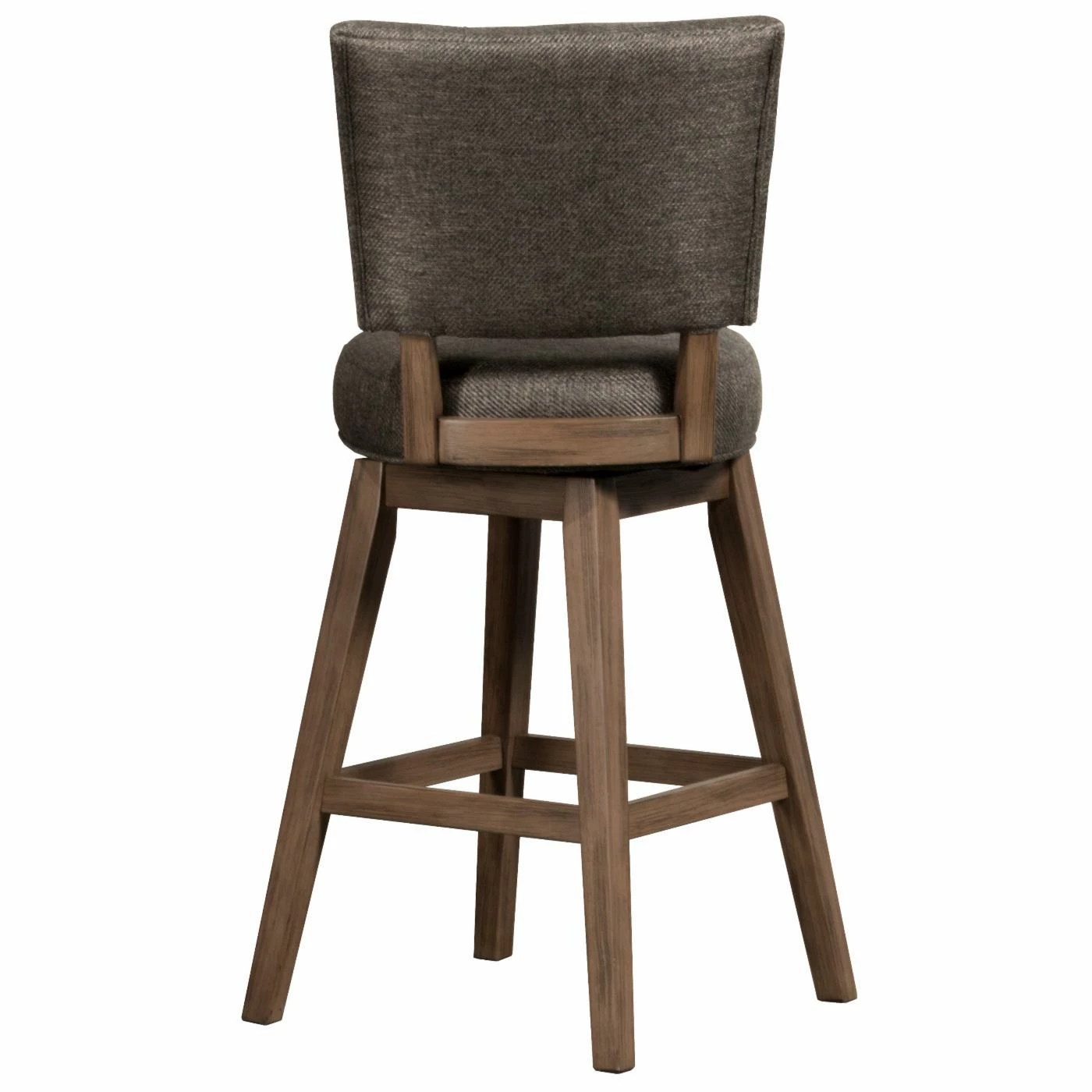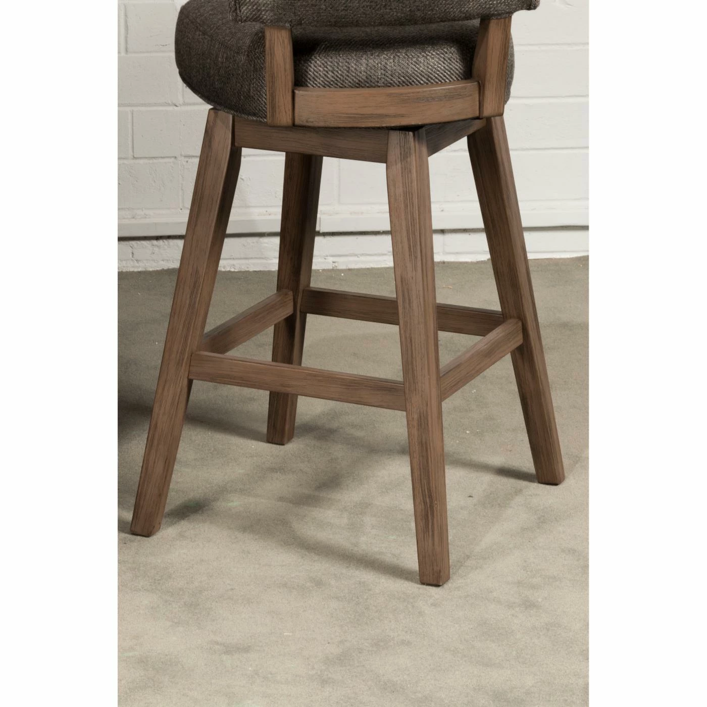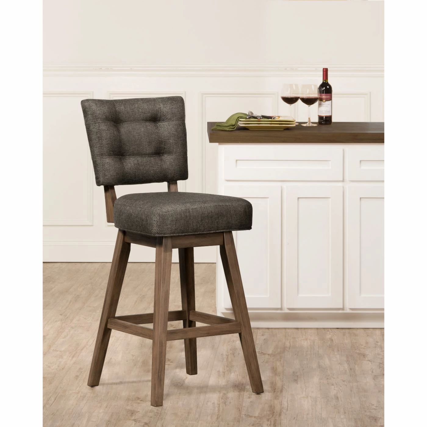 Melding comfortable materials with a relaxed modern look, the Hillsdale Furniture Lanning 26 in. Swivel Counter Stool provides a magnificent elevated seating option for your tall dining table or kitchen island. The armless stool has a durable wooden frame with splayed, block legs. A gorgeous brown finish tops the wood. A swivel base allows the user to rotate the seat a full 360 degrees. Soft foam pads the piece, upholstered in gray fabric and accented with square tufting on the back.