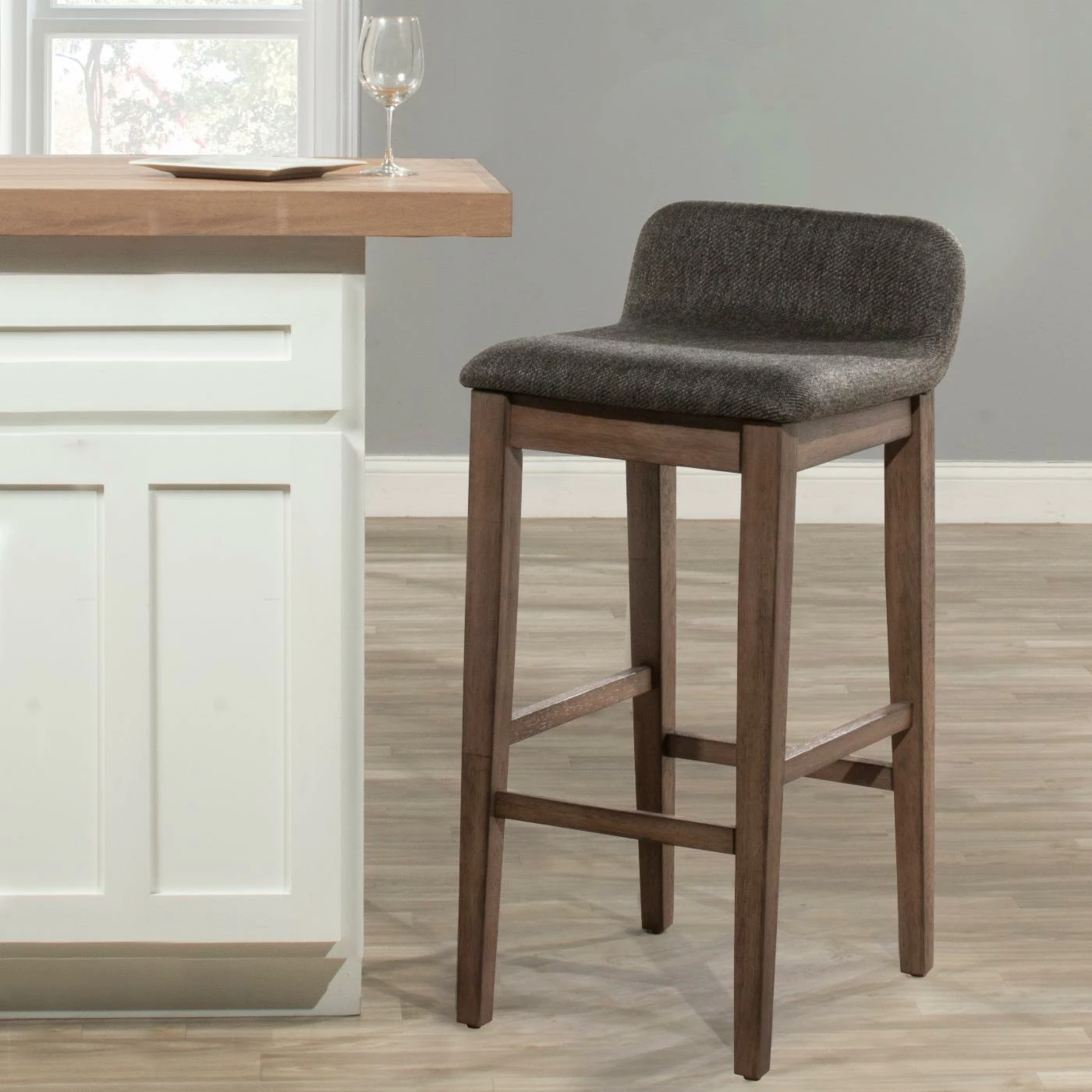For both comfort and class, you can’t go wrong with the Hillsdale Furniture Renmark 26 in. Counter Stool. Featuring a low back and foot rest, this counter stool is at home at the kitchen counter, breakfast bar or counter height dining table. Rounded edges and tapered legs lend an air of subtle sophistication, while the refined brushed gray finish and chocolate with gray hues fabric blend expertly with traditional, contemporary, modern and shabby chic design.