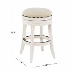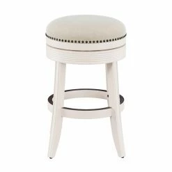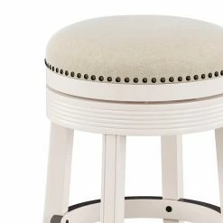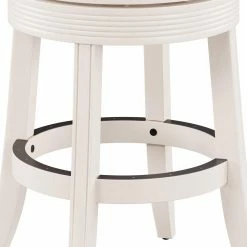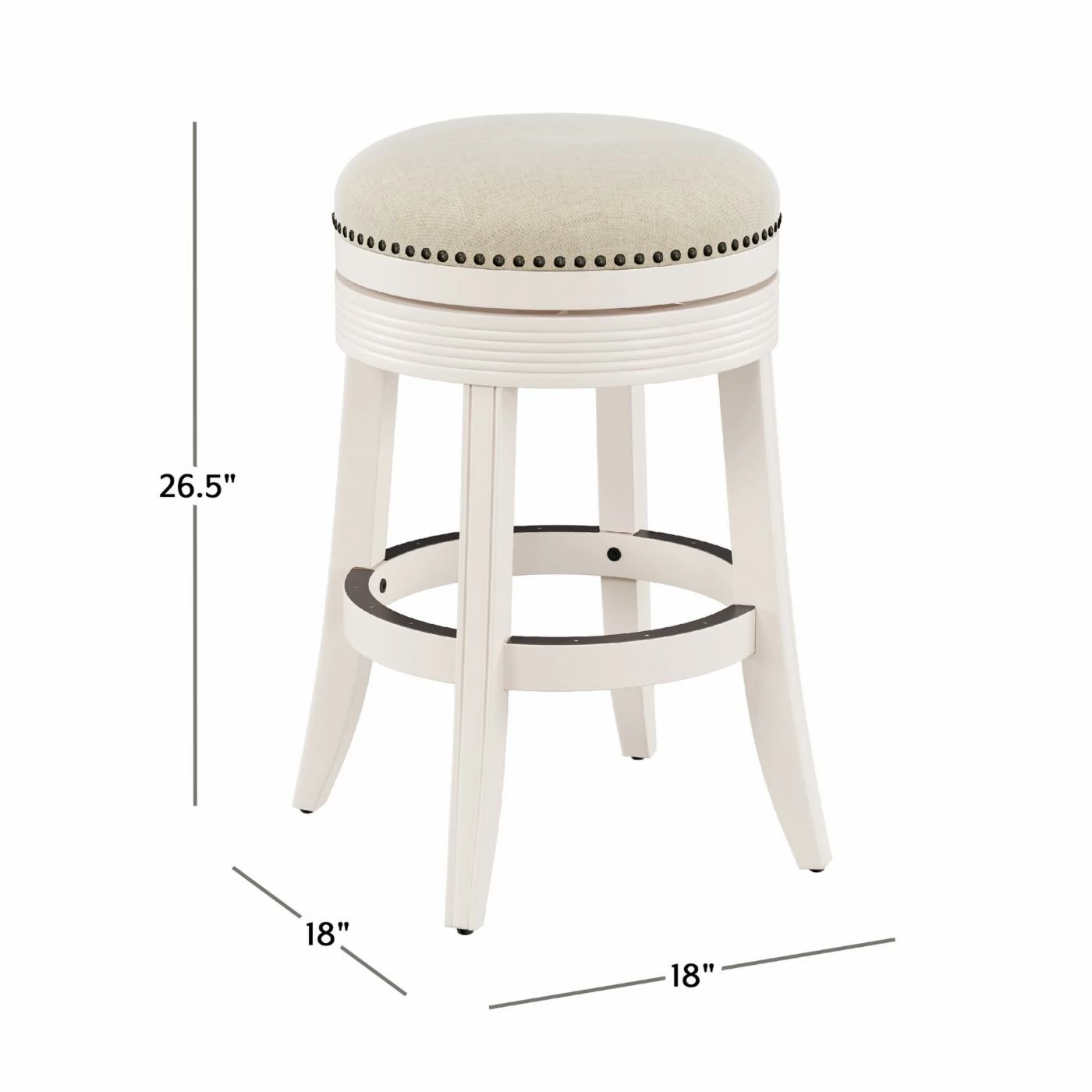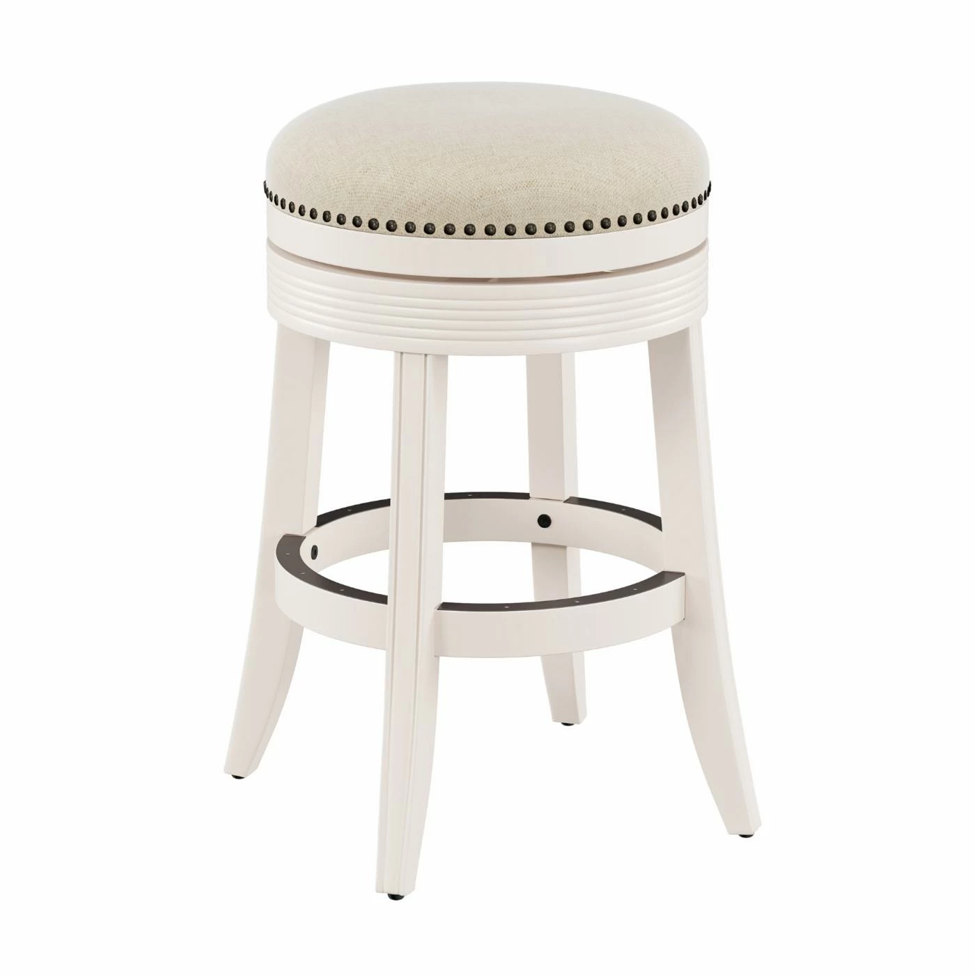 Create a look of understated elegance in your dining area with the Hillsdale Furniture Tillman Backless Swivel Counter Stool. Constructed from hardwood and hardwood composites, this stool is finished in classic white while the luxurious beige seat is the perfect accent and goes with almost any decor. The 360 degree swivel makes chatting and getting on and off the stool simple. Some assembly required.