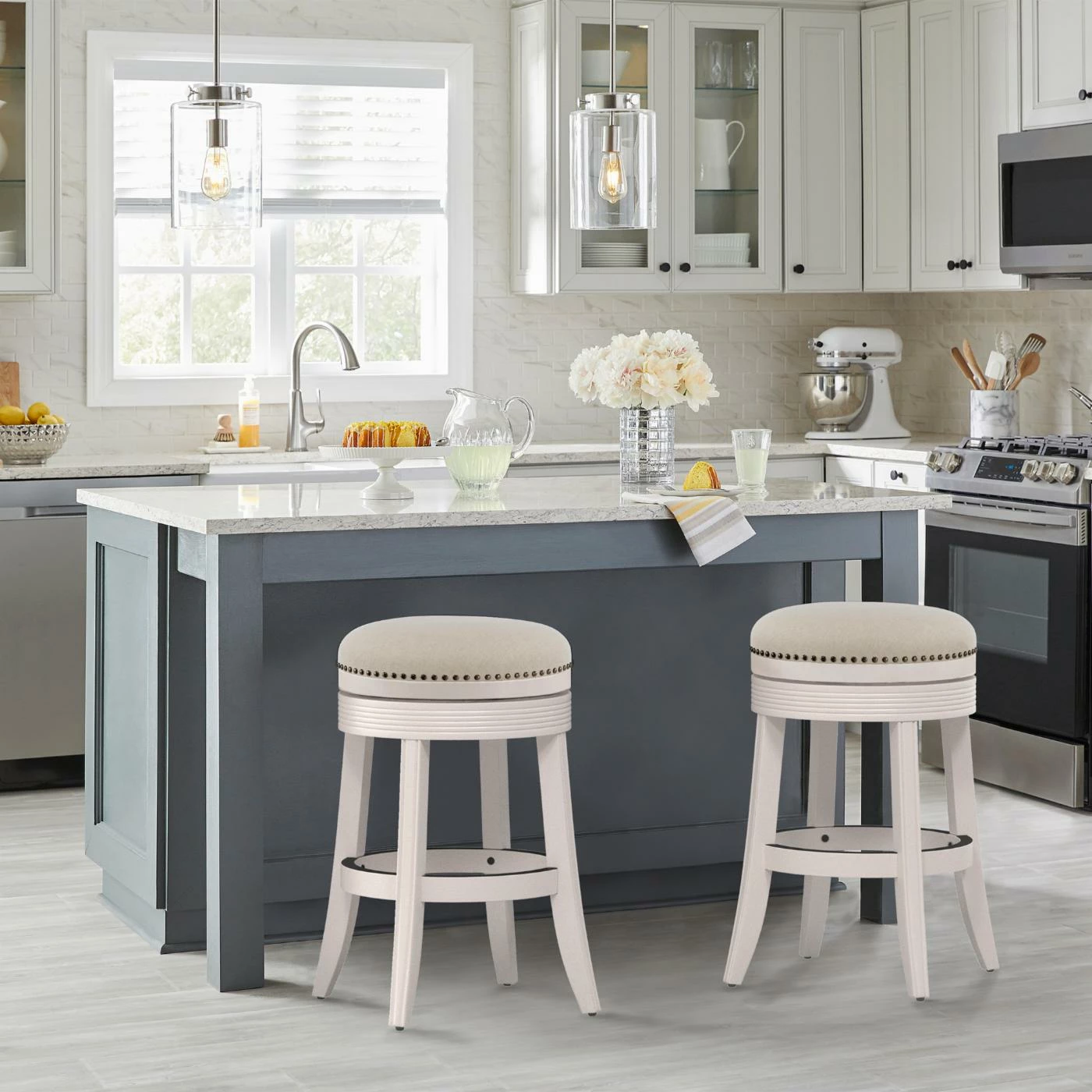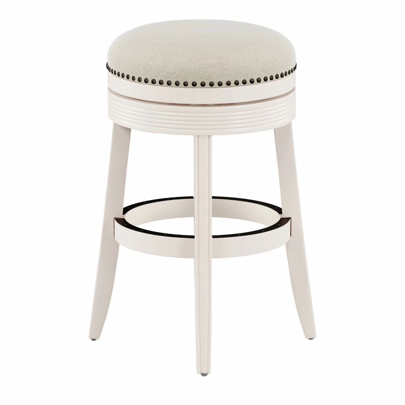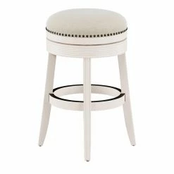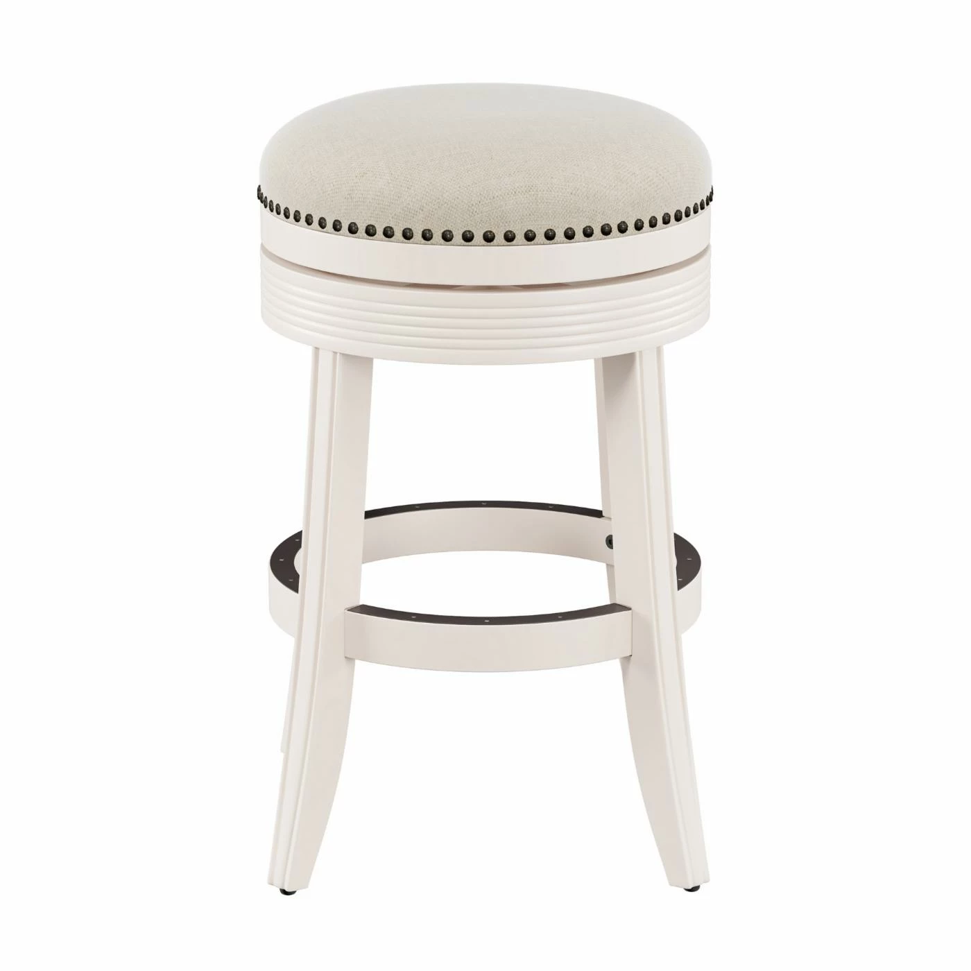 Create a look of understated elegance in your dining area with the Hillsdale Furniture Tillman Backless Swivel Counter Stool. Constructed from hardwood and hardwood composites, this stool is finished in classic white while the luxurious beige seat is the perfect accent and goes with almost any decor. The 360 degree swivel makes chatting and getting on and off the stool simple. Some assembly required.