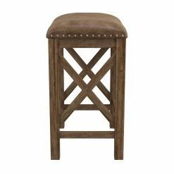 A stylish seating option for upgrading your home furnishings, the Hillsdale Furniture Willow Bend Antique Walnut Stationary 26 in. Counter Height Stool – Set of 2 claims nothing other than what it is. Acacia wood frames with trestle supports feature seats of faux leather. The brown finish is complemented with nailhead trim on the seats. Perfect for dΓ©cor that pulls from cottage or farmhouse styles, the bar stool boasts authenticity. Use in a residential setting.