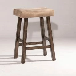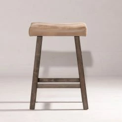 The Hillsdale Saddle Backless Counter Stool – Rustic Gray offers versatile seating within any room. The durable rubberwood construction of this counter stool features a rustic gray finish. Its saddle seat design is embellished in soft faux leather for added comfort. This counter stool is both backless and non-swiveling.