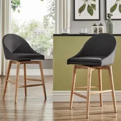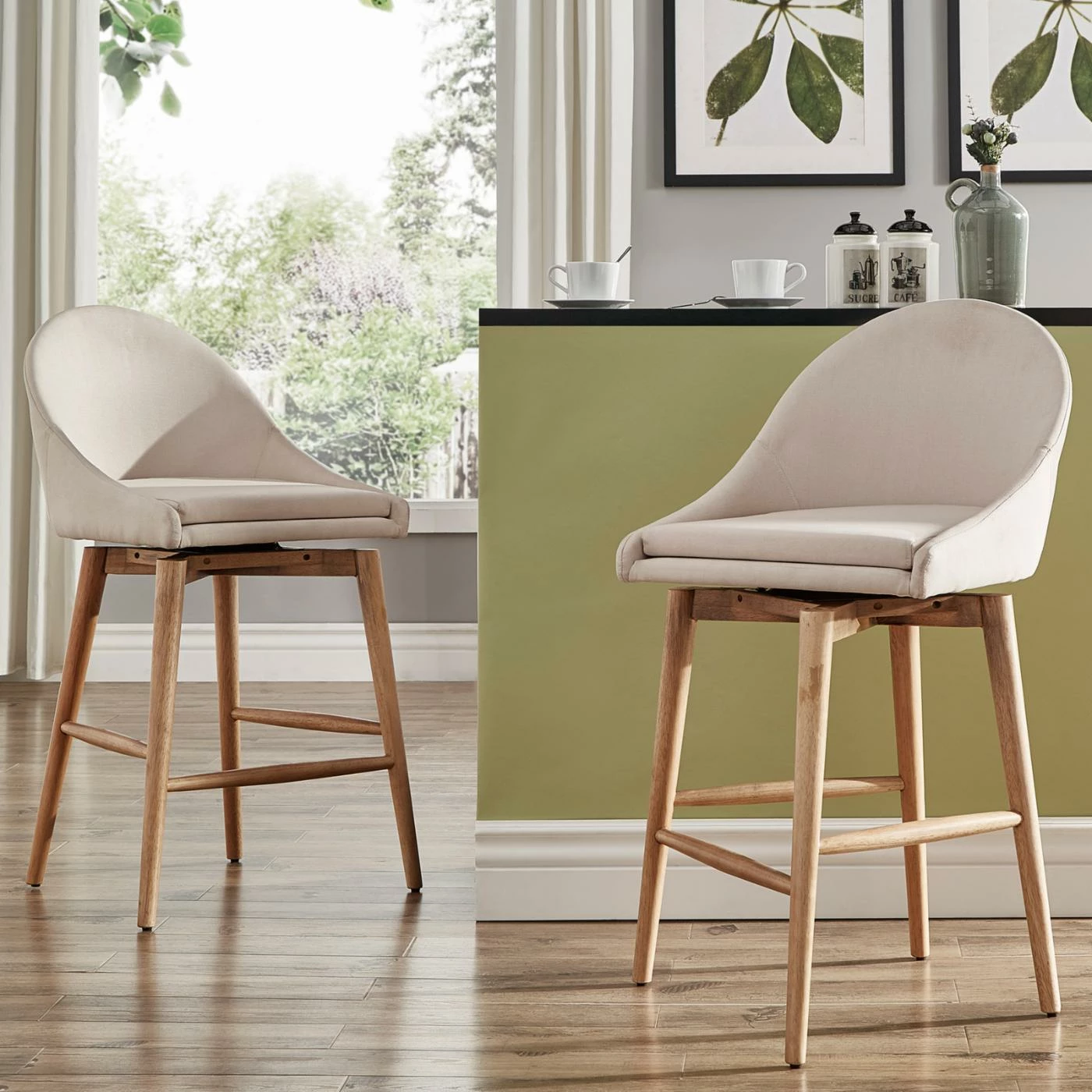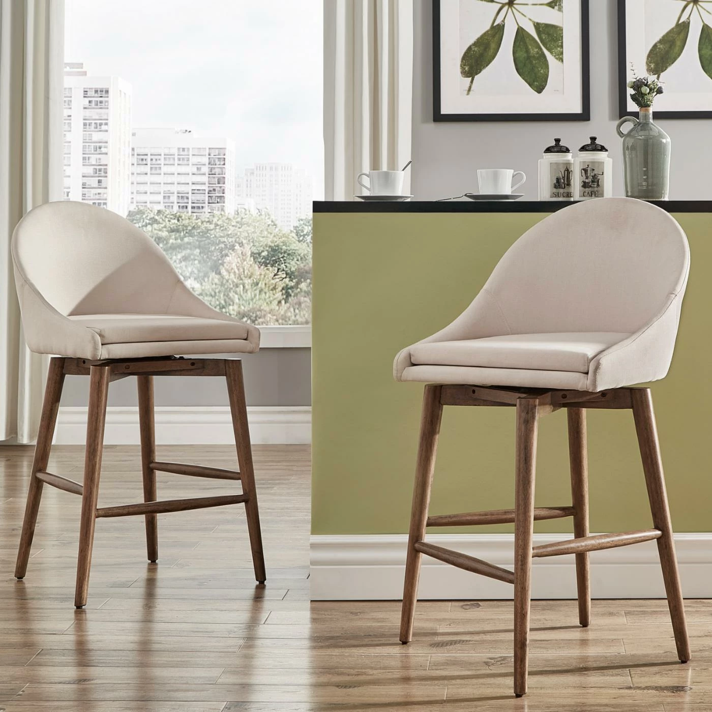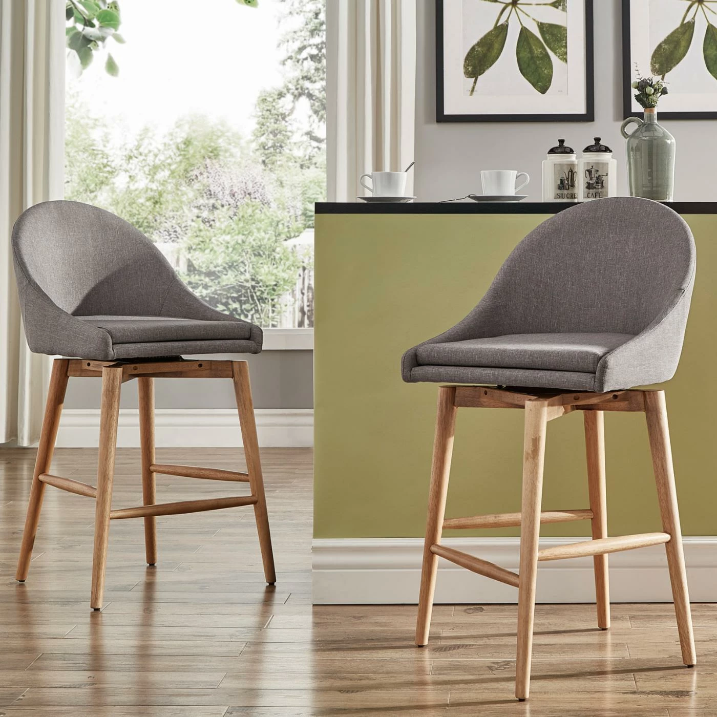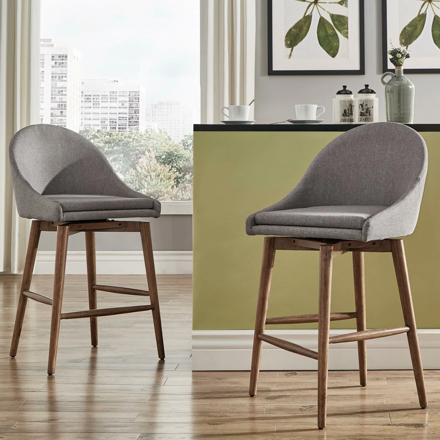 The HN Home Nelson Mid-Century Modern 25.25 in. Swivel Counter Stool – Set of 2 features a sleek, contemporary design that is sure to elevate the style of your dining room or kitchen. Each stool has a solid wood frame. Stretchers add strength and durability to the piece, while a convenient footrest allows you to sit comfortably while you dine. The swivel function allows you to easily keep track of the conversation with your guests. Choose from available finishes and fabric colors to find the Weston Home Wynter 25.25 in. Swivel Counter Stool – Set of 2 that best suits your home.