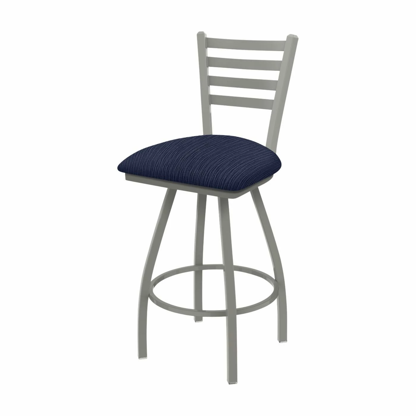 Make your kitchen counter-space more functional with some comfortable seating in the Holland Bar Stool Co XL 410 Jackie 25 in. Fabric Swivel Counter Stool. This stool is built from hardy squared steel with curved legs and a round stretcher. The armless back features horizontal ladder slats for support. Plush foam pads the seat, upholstered in fabric. Customize the look of the piece with your choice of frame finish and fabric color options.