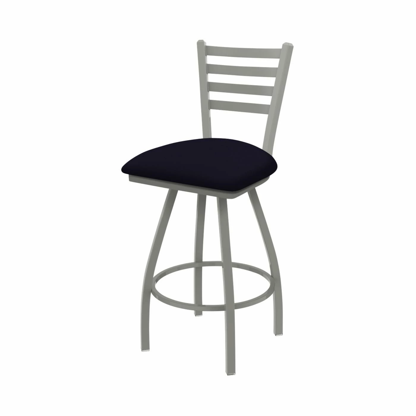 Offer your breakfast bar some plump seating with the Holland Bar Stool Co XL 410 Jackie 25 in. Faux Leather Swivel Counter Stool. This counter-height stool is supported by a squared steel frame with curved legs and a ring stretcher. The ladder backrest comes with a foam-padded seat for comfort and is designed to swivel. Vinyl faux-leather upholsters the seat. Customize the look of the piece with your choice of available finish and fabric color option.