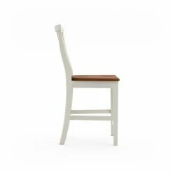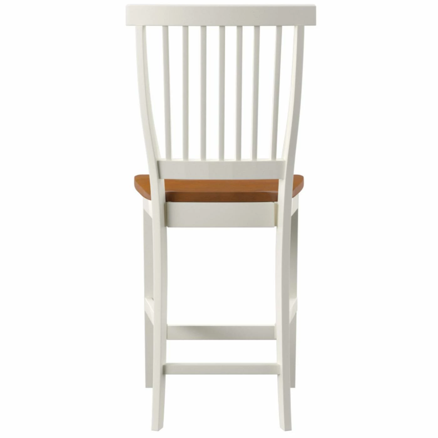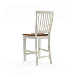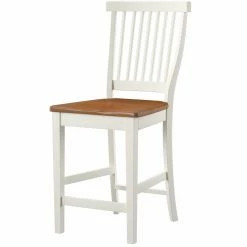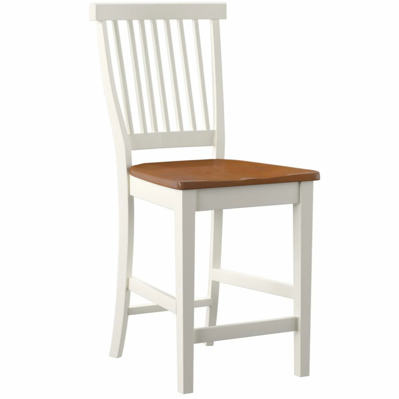 The Home Styles Woodbridge 24 in. White & Oak Counter Height Stool encourages you to get off your feet and have a seat. Warm and welcoming, this classic wooden counter stool boasts a casual, relaxed style that complements a wide range of decor – from country cottage to contemporary. Durably constructed with hardwood solids, this cozy stool has a crisp, clean white finish combined with a distressed oak seat for a lovely contrast. Easy to clean and maintain, it features straight, simple lines, contoured seat, and slat-style backrest for added support. And since this stool doesn’t have armrests, it slides easily under your counter, bar, or table to help save space.Β This stool is ideal for your counter height bar seating.Β This stool matches the Woodbridge Kitchen Island, please see “relatedΒ items” for the complete set.Β Β