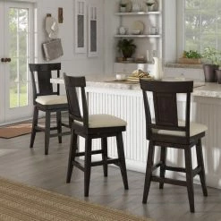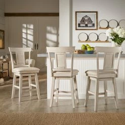 Add classic style to your dining space with the HumbleNest Countryside Rustic Panel Back 25.8 in. Counter Height Wood Swivel Stool. Constructed of sturdy rubberwood, this bar stool has a padded seat cushion upholstered in linen. The swivel stool allows you to keep track of the conversation, while the square seat back provides comfort and support. Stretchers add strength and durability to the piece, and there is a convenient footrest. Choose from available finishes to find the stool that works best for your dining room, kitchen, or bar area.