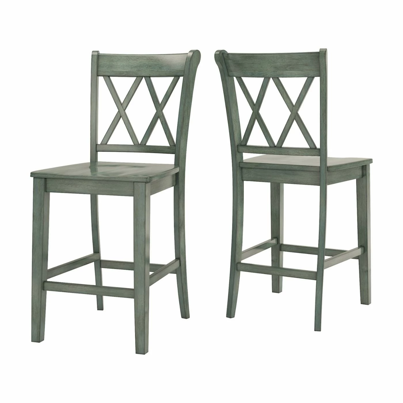 Twin X-style supports add country charm to the HumbleNest Farmers Market Vintage Double X 24 in. Counter Stool – Set of 2. This set includes two counter stools built of solid rubberwood and offered in your choice of available finishes. Each has a roomy, contoured wood seat and footrest stretchers to ensure guests will be seated comfortably around your counter height gathering table.