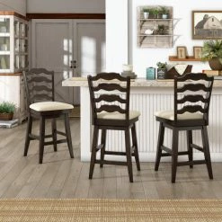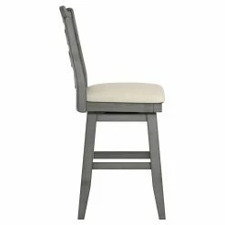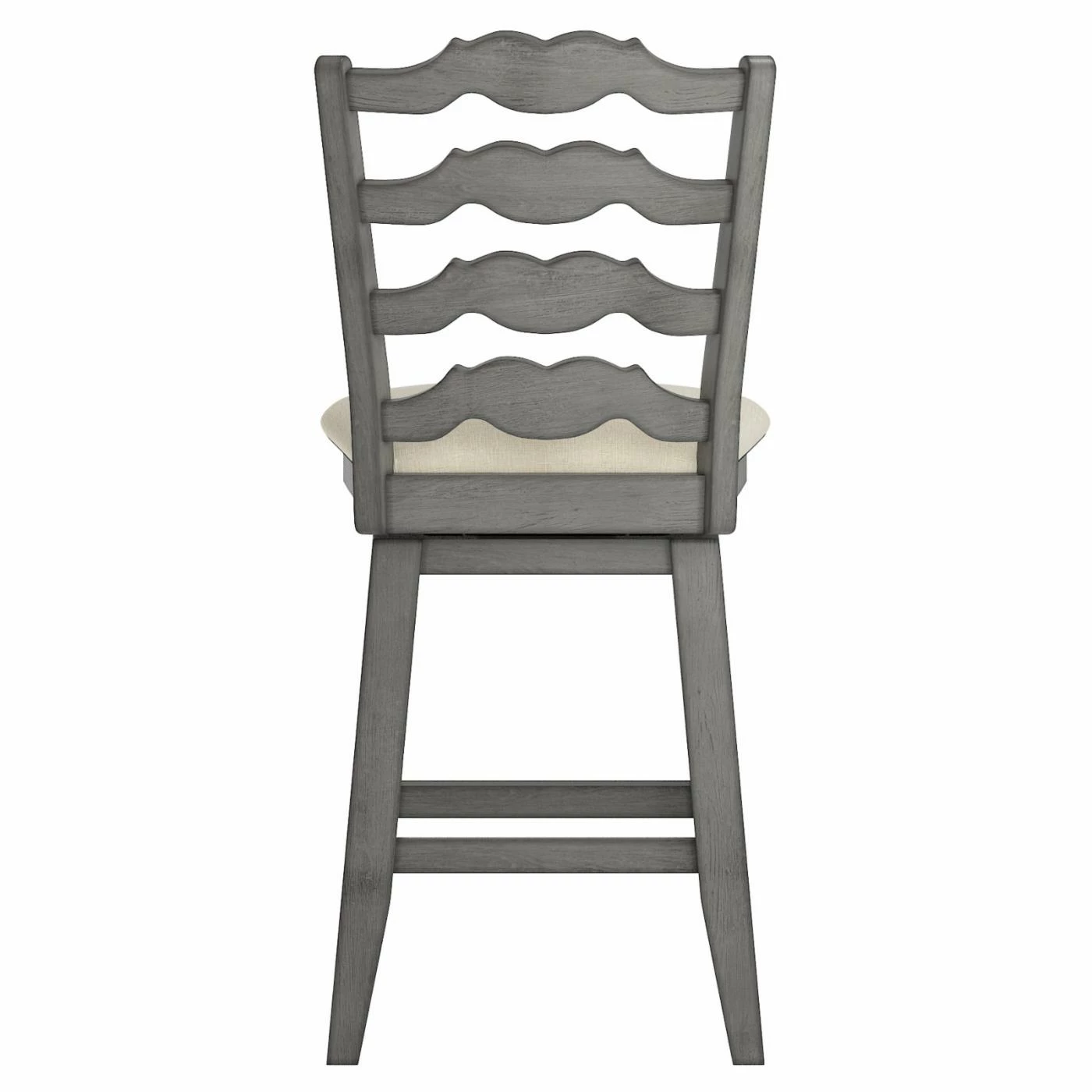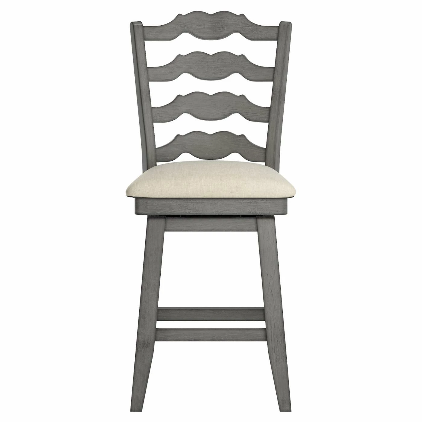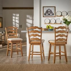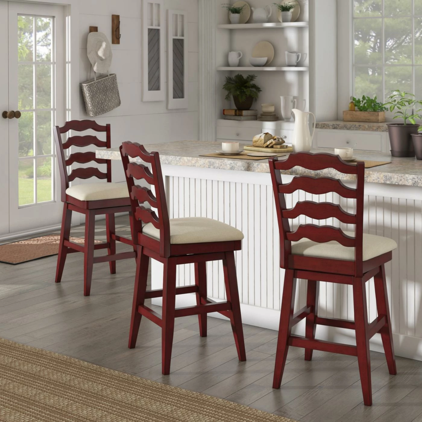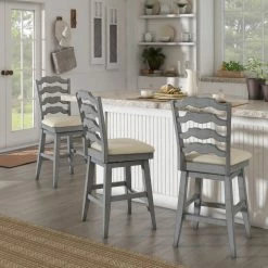 Bring classic charm to your dining area with the HumbleNest Homestead French Ladder Back 25.8 in. Counter Height Swivel Stool. Constructed of durable rubberwood, this swivel stool has a comfortable, padded seat upholstered in white linen. The seat back features a French ladder back design. Stretchers add strength to the piece, while the footrest allows you and your guests to sit comfortably. Choose from available finishes to find the stool that works best for your kitchen or dining room.