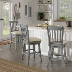 Add style and comfort to your dining room or kitchen with the HumbleNest Homestead Slat Back 25.8 in. Counter Height Wood Swivel Stool. This armless counter stool features a rubberwood frame with stretchers and a convenient foot rest. The seatback has a timeless slat back design, allowing this stool to work with a variety of home dΓ©cor styles, from contemporary to modern farmhouse.