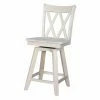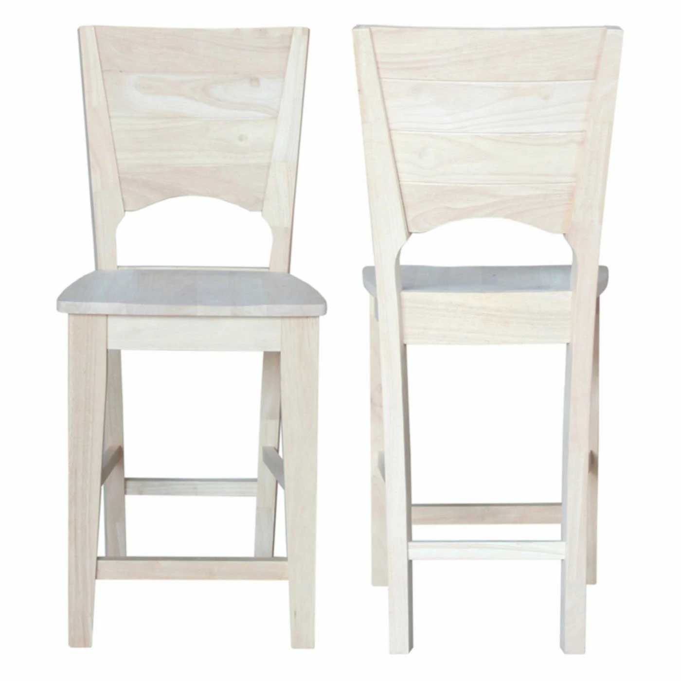 The angled, keyhole back design of the International Concepts Canyon Counter Stool makes it a transitional seating option for your breakfast bar. This counter height stool is made of solid wood in a farmhouse white finish. Footrest stretchers offer comfort and stability.