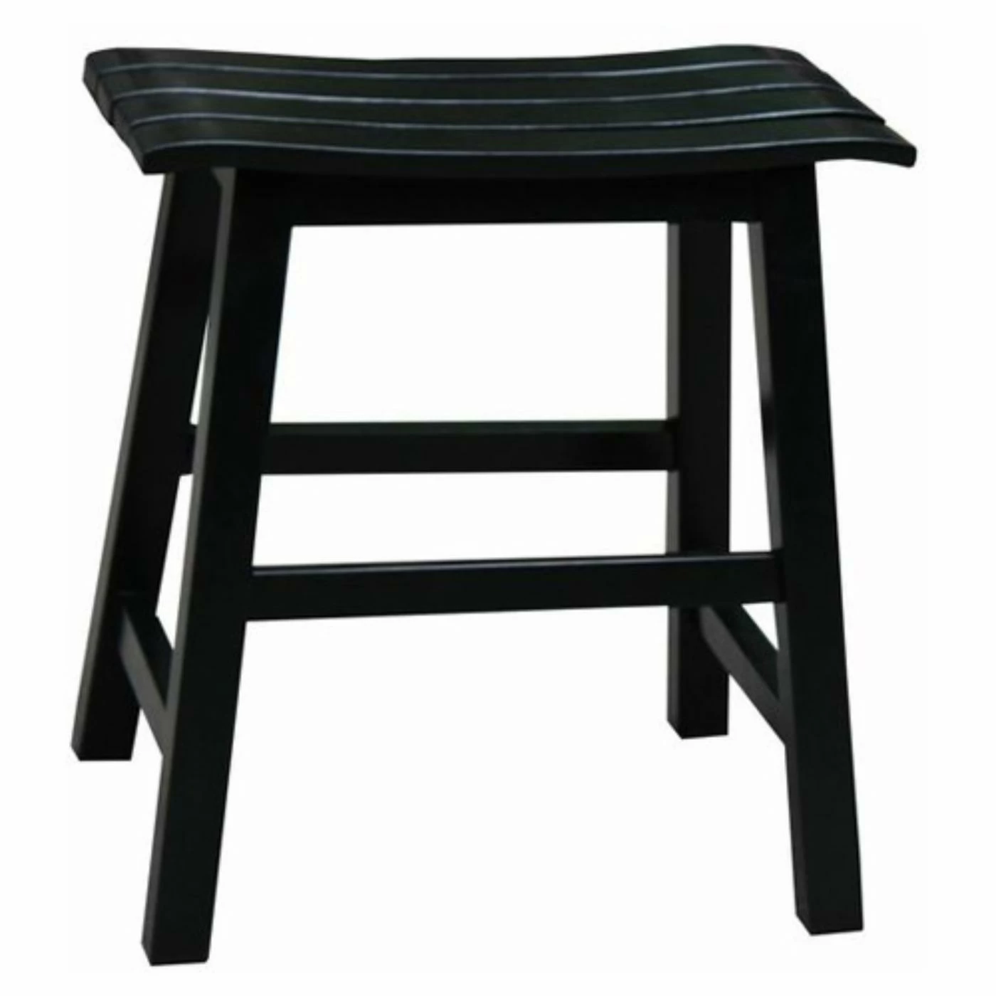 The International Concepts Dandridge Backless Slat Seat Dining Stool is a great choice for the kitchen counter or home bar. Made from solid Acacia wood and given a finish of your choice, this slat style saddle seat has a bold appearance that appeals to all. Footrests all around the base add to this stool’s comfort and the elegant simplicity of its design is sure to complement any variety of dΓ©cor. Some assembly is required with everyday household tools for quick and easy setup. Stands 18.4 inches tall.