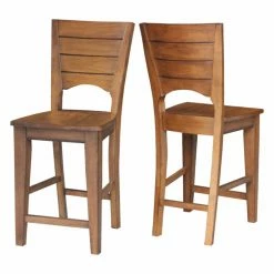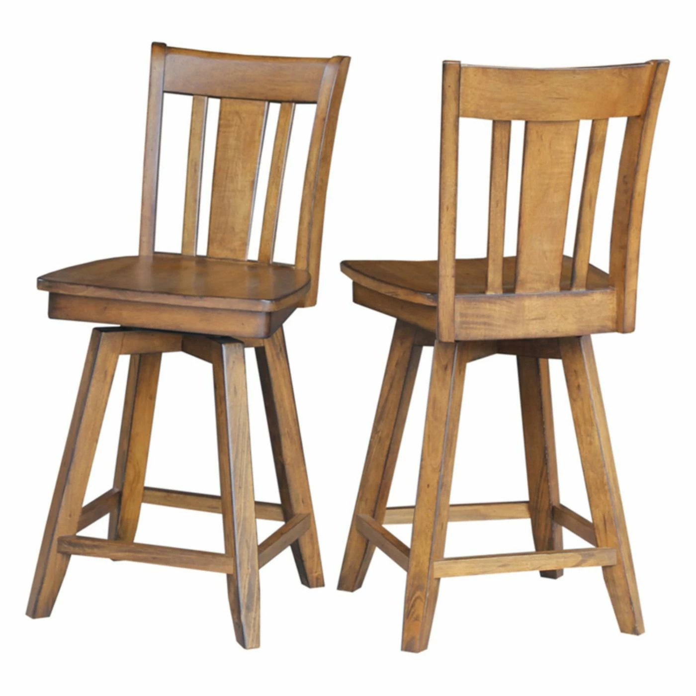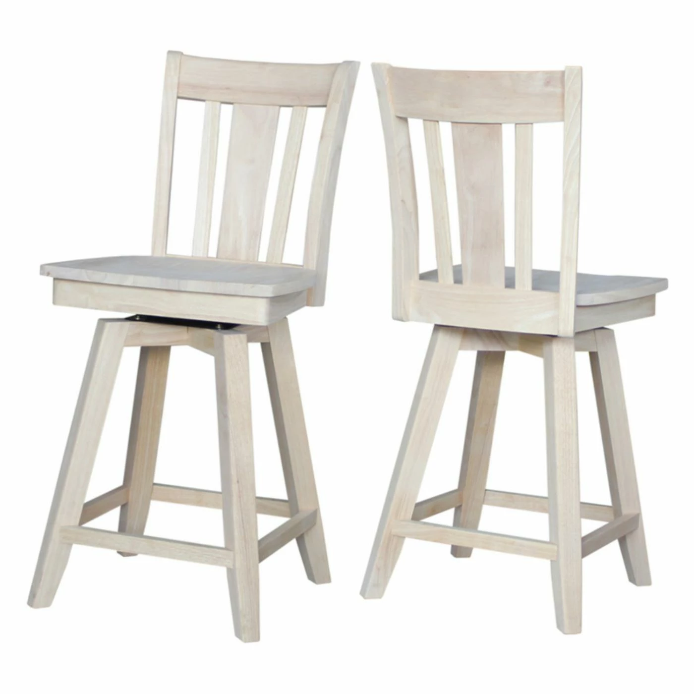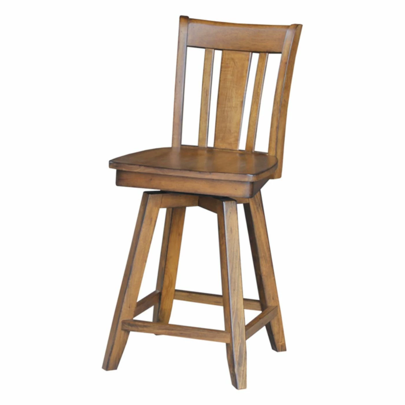 A smooth swiveling seat makes the International Concepts San Remo Swivel Counter Stool perfect as seating around your conversation table. This swiveling counter height stool is made of solid wood with a farmhouse style slat back. Choose from available finish options.