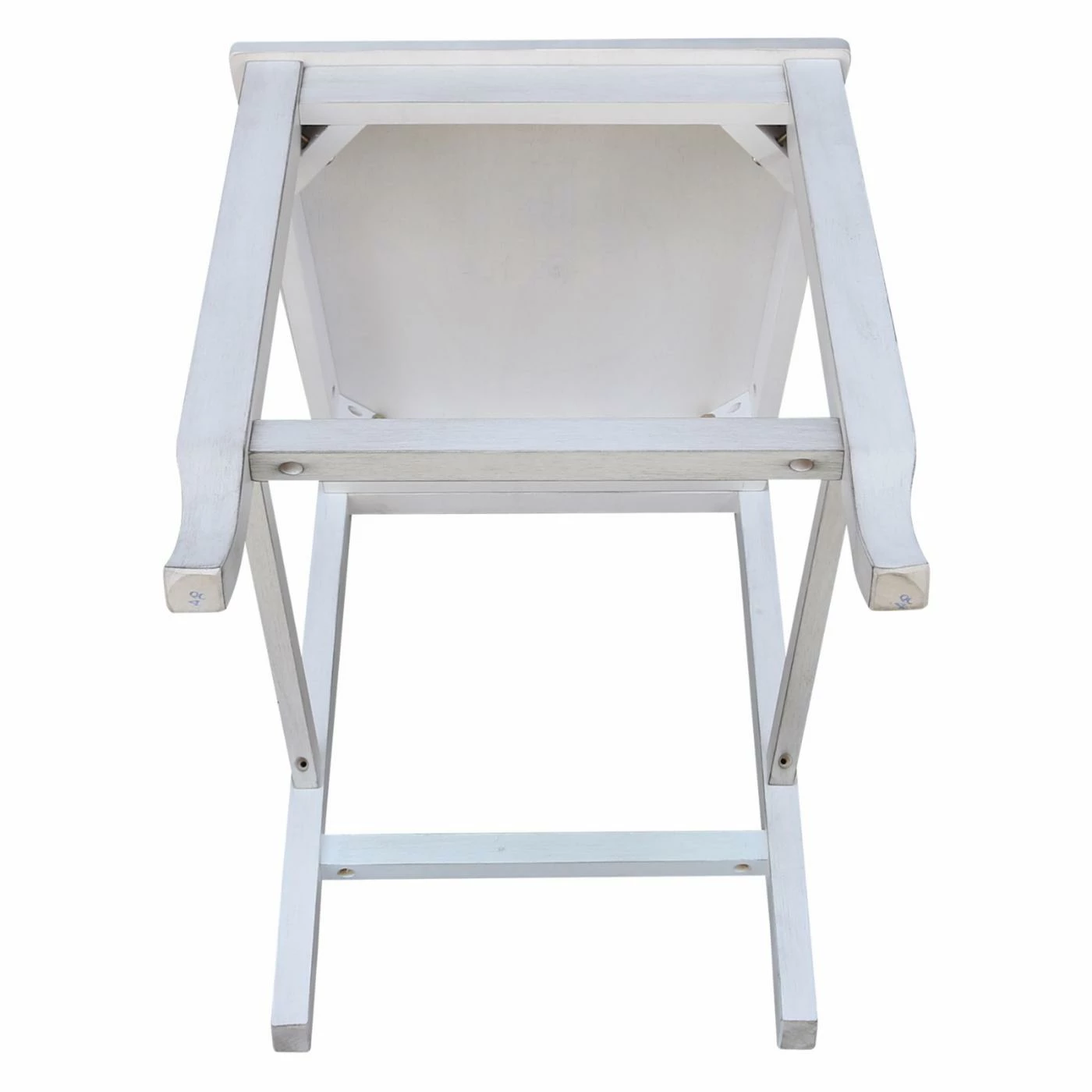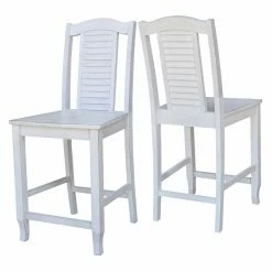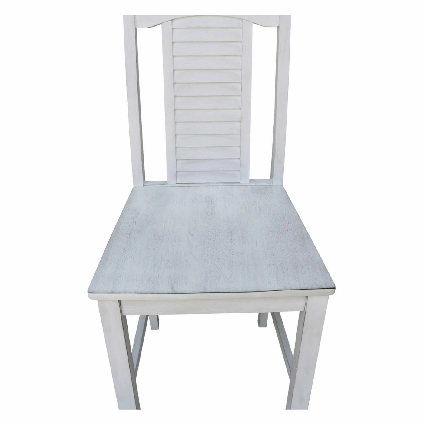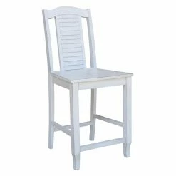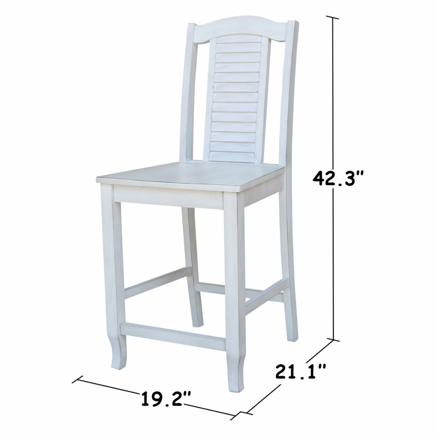 Update your coastal or cottage style space with the International Concepts Seaside 24 in. Counter Height Stool. This counter height stool is crafted from hardwood with a splat back design featuring a shutter-style insert. The antique chalk finish gives it a rustic yet refined vibe.