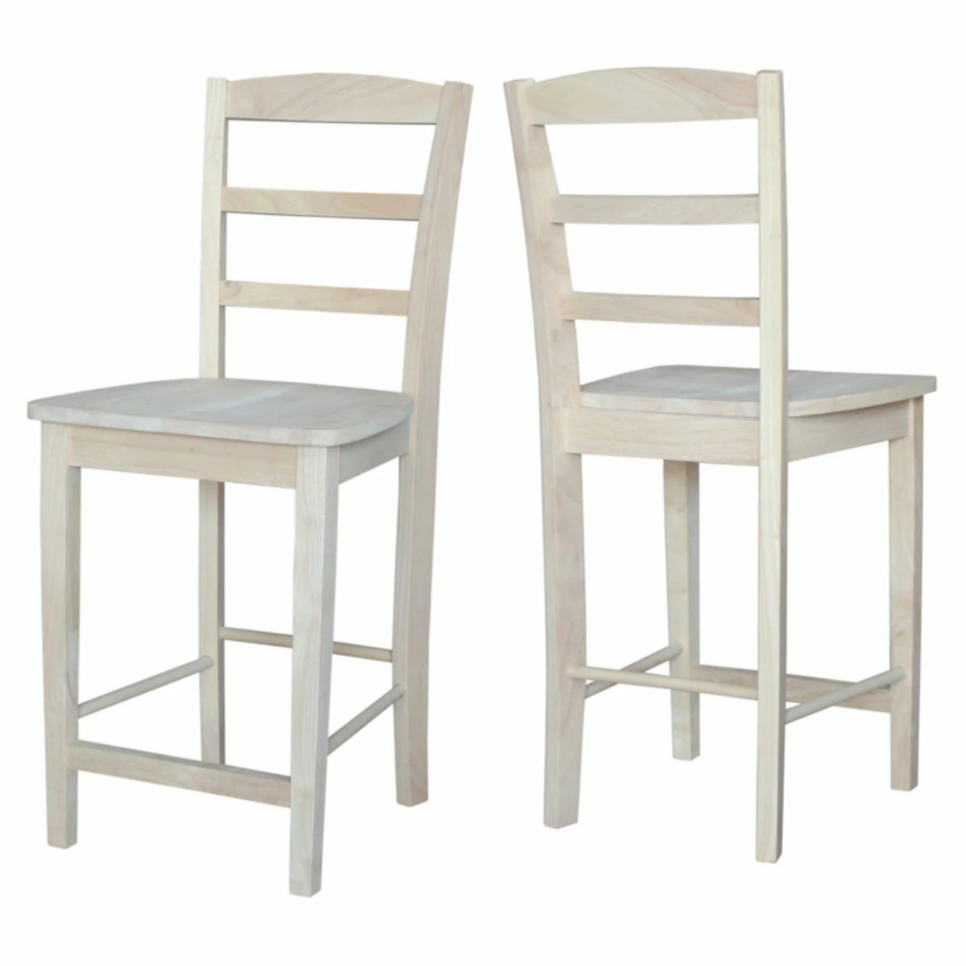 Shipped to you unfinished, the International Concepts 24-Inch Madrid Counter Stool is ready to receive any varnish or stain you like. Match your decor with ease or leave the wood bare for a fresh look. It’ll wipe clean easily and look great, too. This traditional stool features solid construction and a two-rung ladder-back design. The square seat has slightly rounded edges. This piece is constructed from solid parawood, an easy-to-finish, environmentally friendly hardwood. The 24-inch stool measures 19.3L x 16.3W x 40.75H inches. For residential use only. Some assembly required. Please note: This item is not intended for commercial use. Warranty applies to residential use only.