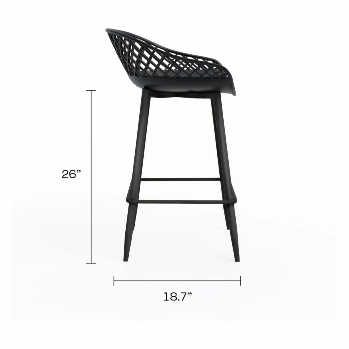 Add the Jamesdar Kurv 26 in. Counter Height Stool – Set of 2 to a breakfast table or metal counter height table in your modern kitchen. This set includes two sleek, contoured stools with low backs and arms and a lattice accent design. The base of each stool is made of reinforced steel for plenty of support and the seat is made of polypropylene for an easy-clean surface. Choose from available neutral finishes to match your dining space.