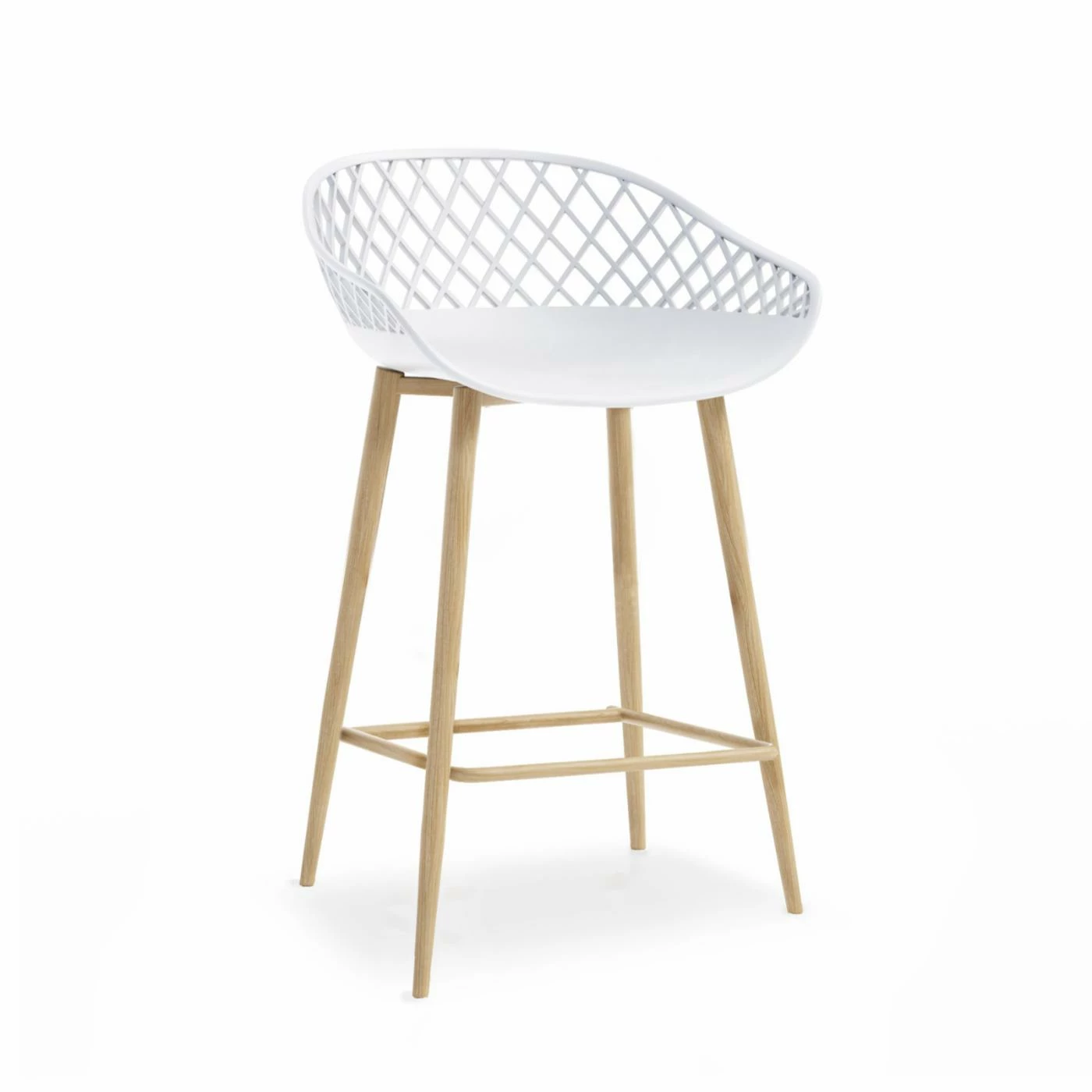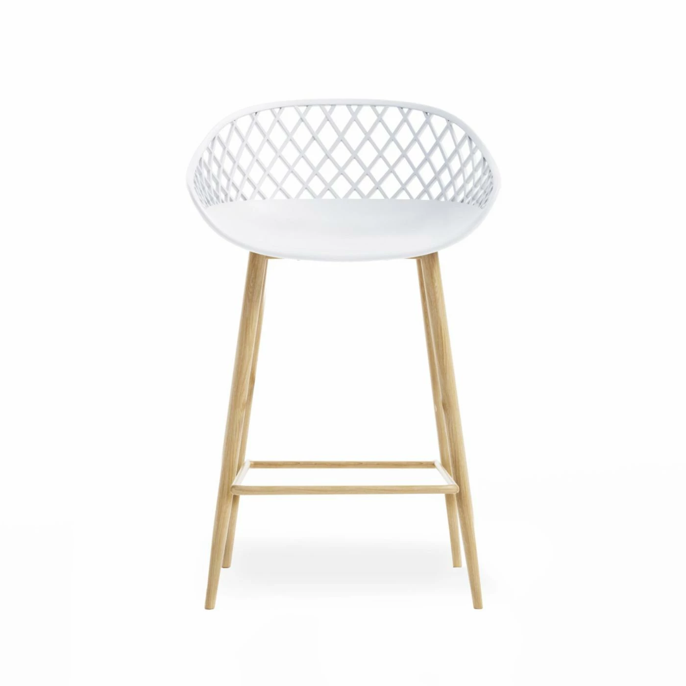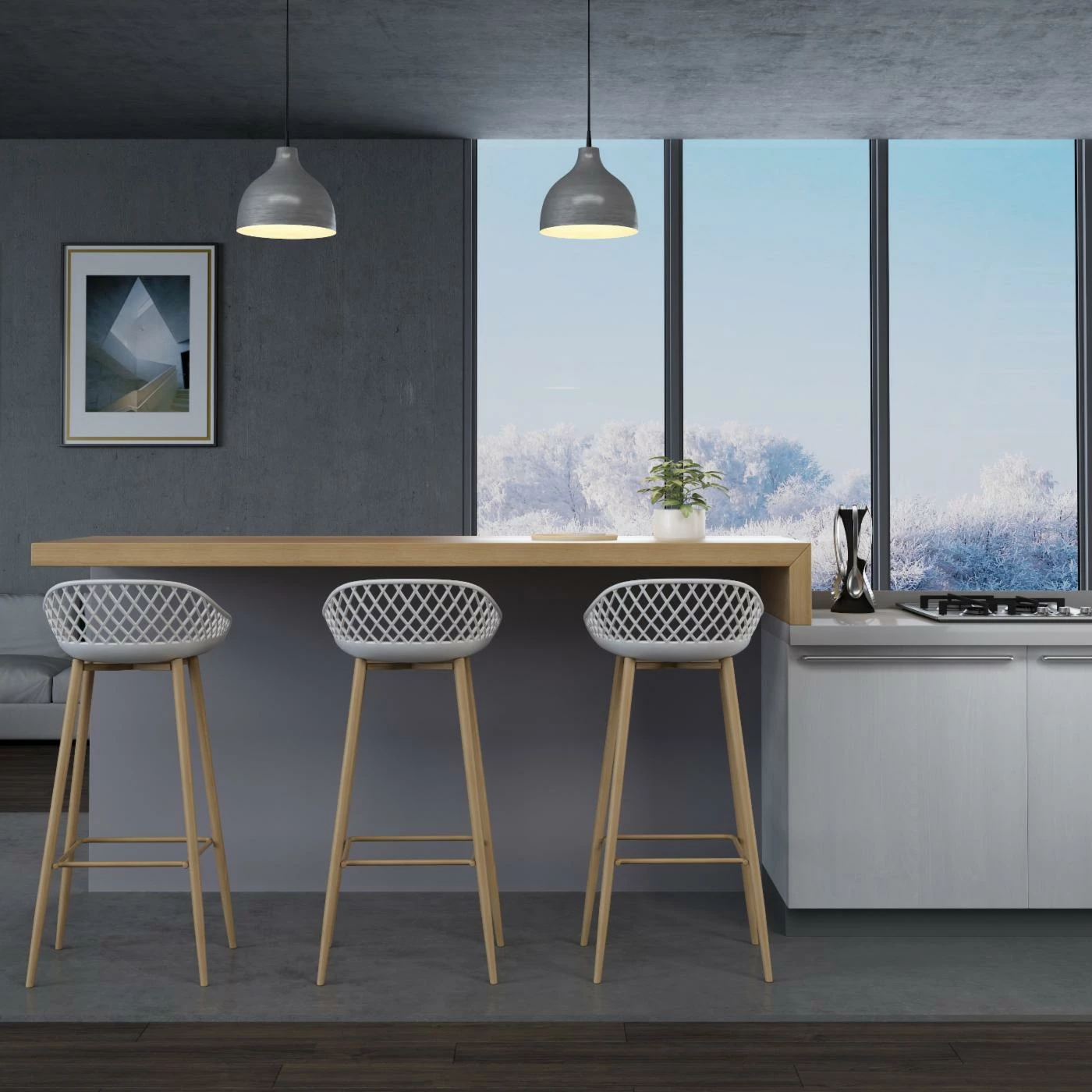 Update your counter-height seating with the bold Jamesdar Kurv 26 in. Counter Stool – Set of 2. This on-trend set of stools features steel frames supporting a polypropylene seat with a low back and cutout detailing. Choose your favorite color to complement your space.