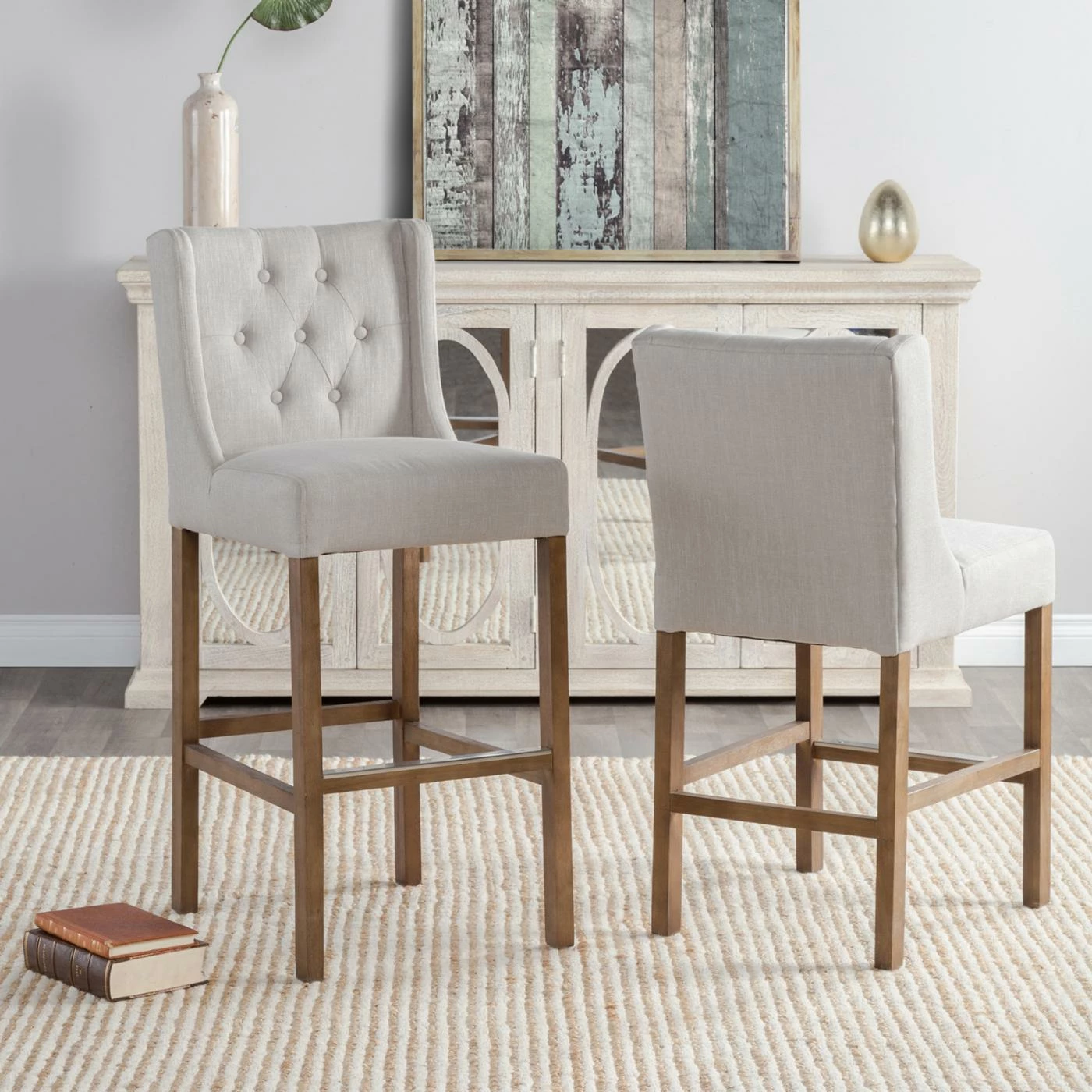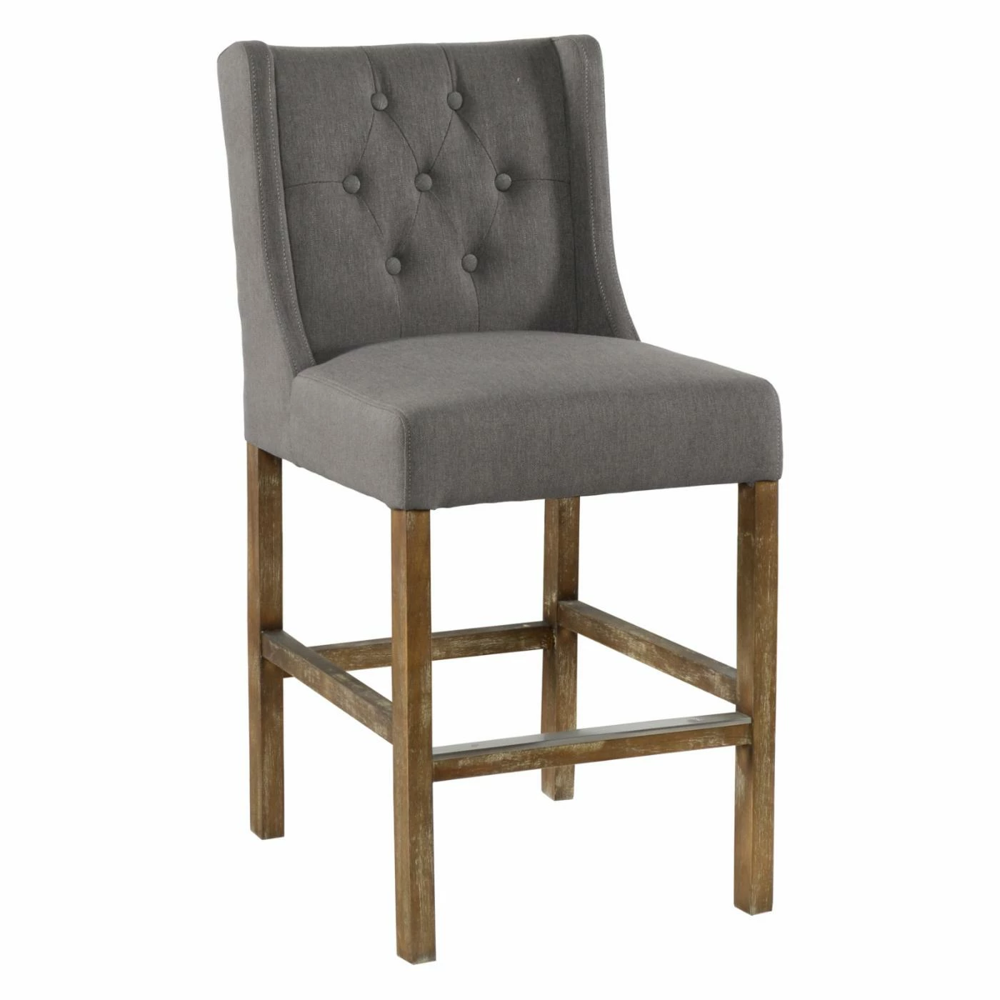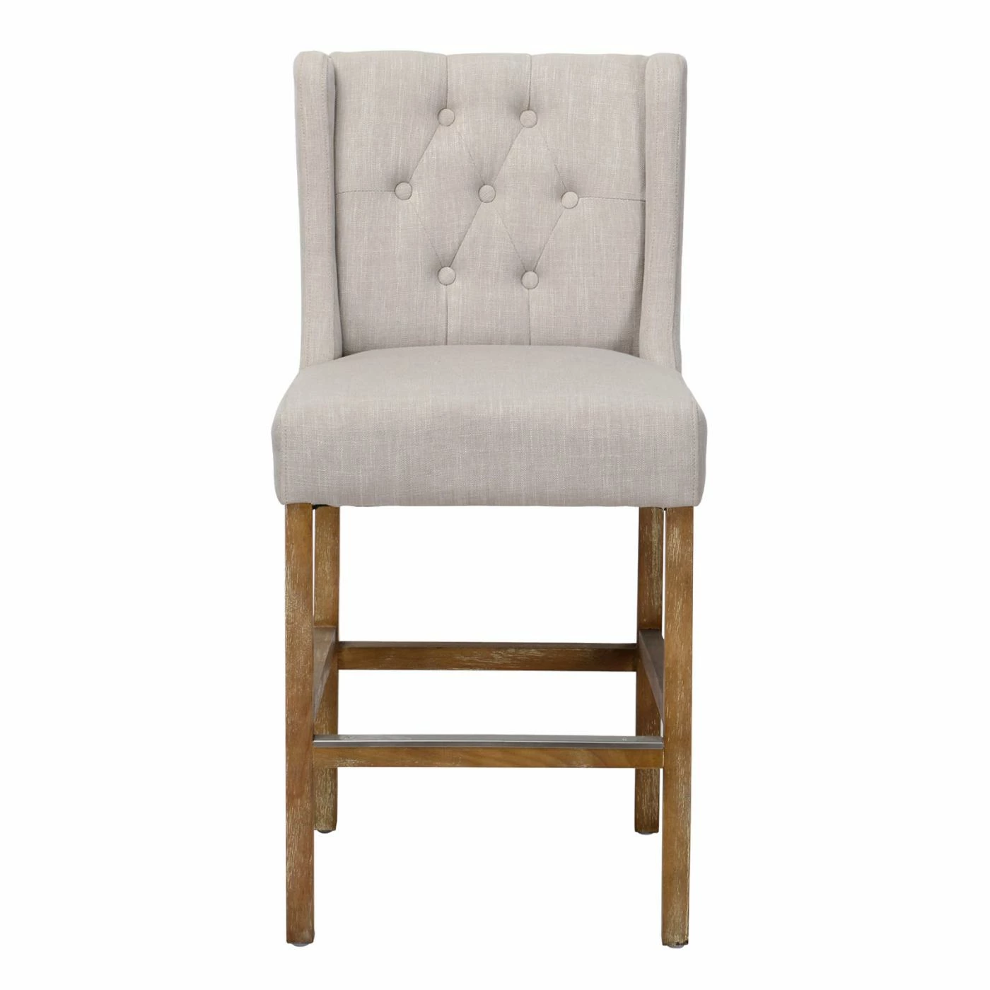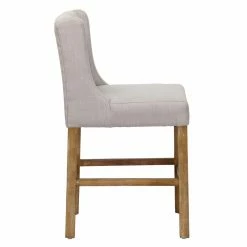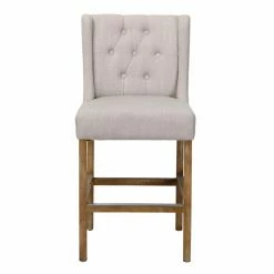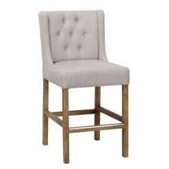 Upgrade the seating at your chat table or breakfast counter with the Kosas Home Karla Upholstered Counter Stool. Classic design features include a button tufted wingback and generous seat. This counter-height stool features simple wood legs and a footrest bar capped in metal. Make it yours by choosing from the available upholstery colors.