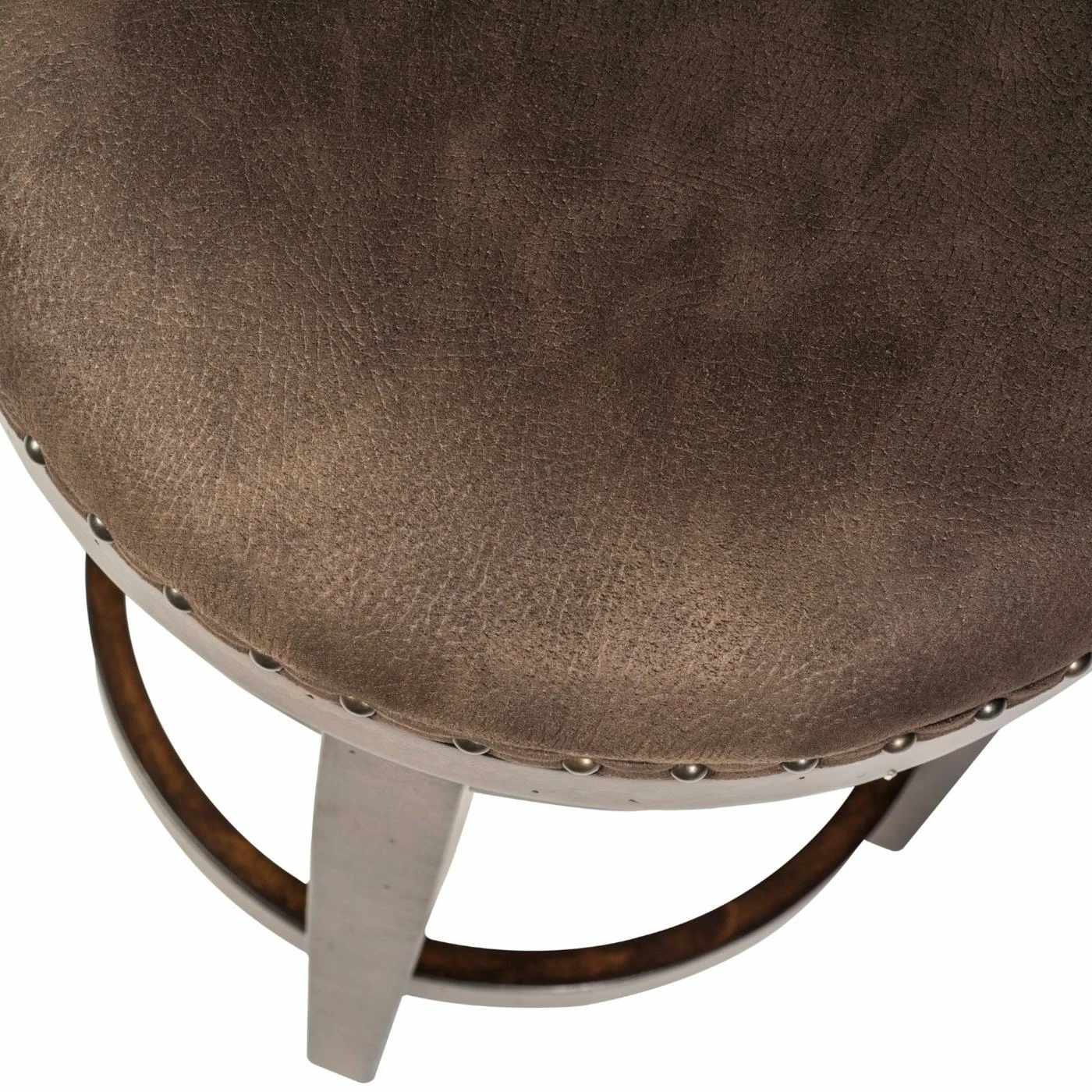 Set an inviting scene in your traditional or rustic dΓ©cor with the Liberty Furniture Industries Aspen Skies Swivel Counter Stool. Cozy style abounds on this counter stool, including fabric upholstery with nailhead trim on the swivel seat and slightly tapered legs. The frame is crafted of wood with New Zealand pine veneers, and its russet brown finish enhances the natural grain of the wood. Nylon glides on the feet help protect floors from scuffs and scratches.