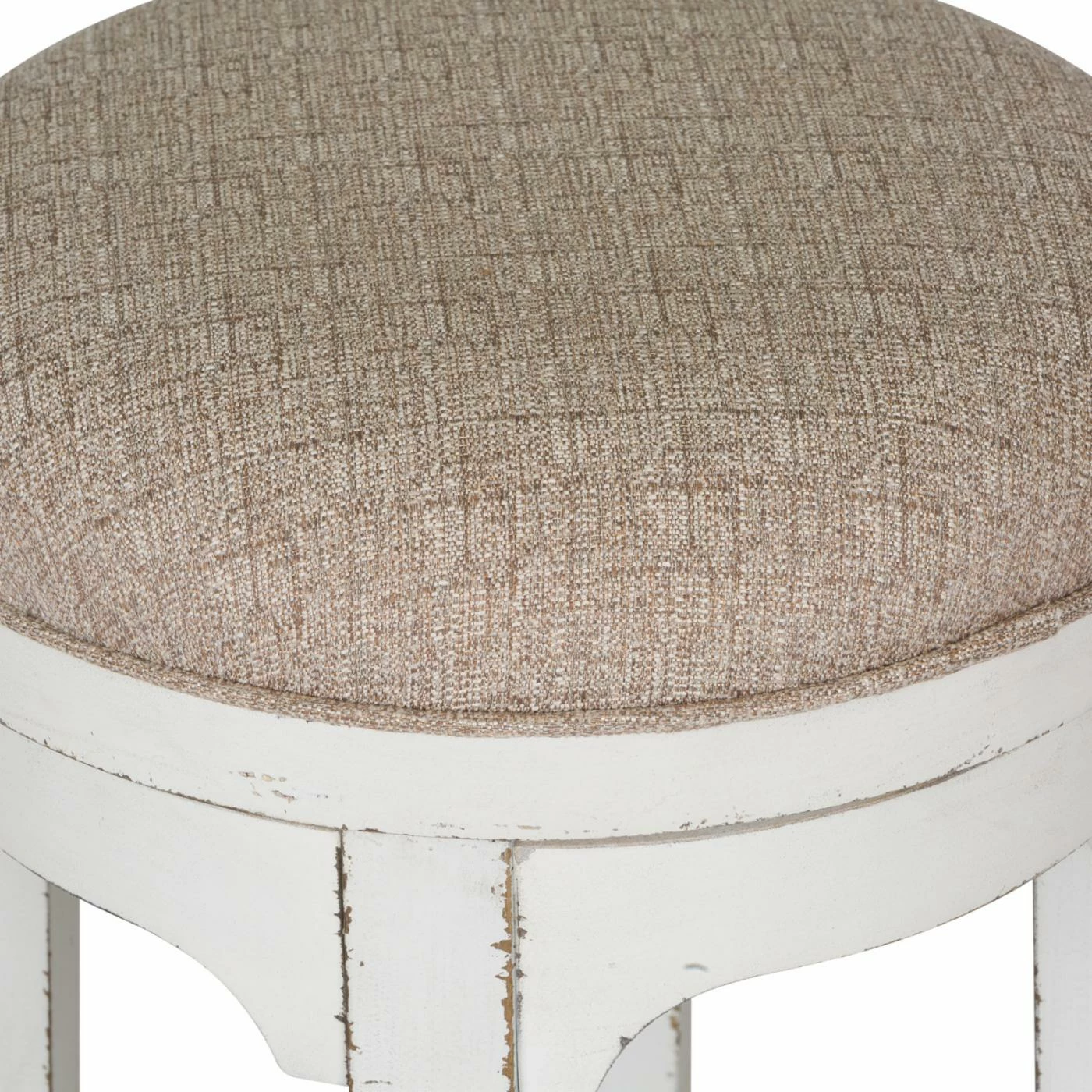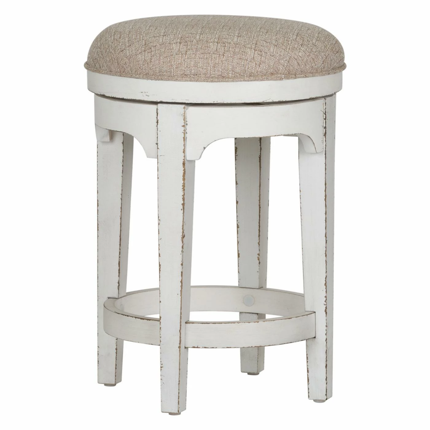 Counter-height seating has never looked more charming thanks to the Liberty Furniture Industries Magnolia Manor Counter Stool. Distressed effects on the frame’s white finish create a lived-in appeal that’s great for rustic and cottage dΓ©cors. Crafted of solid poplar with white oak and birch veneers, the counter stool features French and English dovetail joinery for the best in construction. The swivel seat has fabric upholstery, and you’ll find nylon glides on the feet to help protect floors.