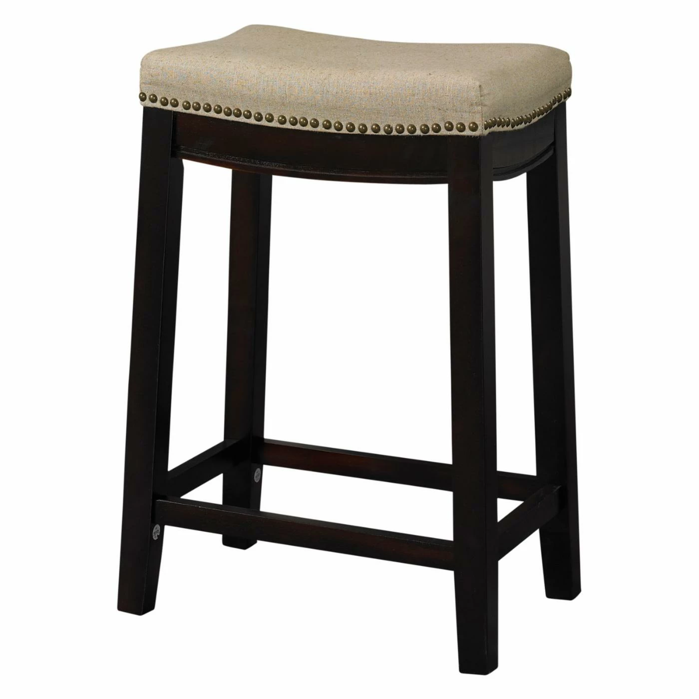 Casual yet contemporary, the Linon Hampton 26 in. Backless Counter Height Stool adds stunning style to your home. Padded for comfort, this stool has a natural fabric upholstery accented with nailhead trim. Its strong wooden frame is finished in a deep brown to play off the beige seat upholstery.