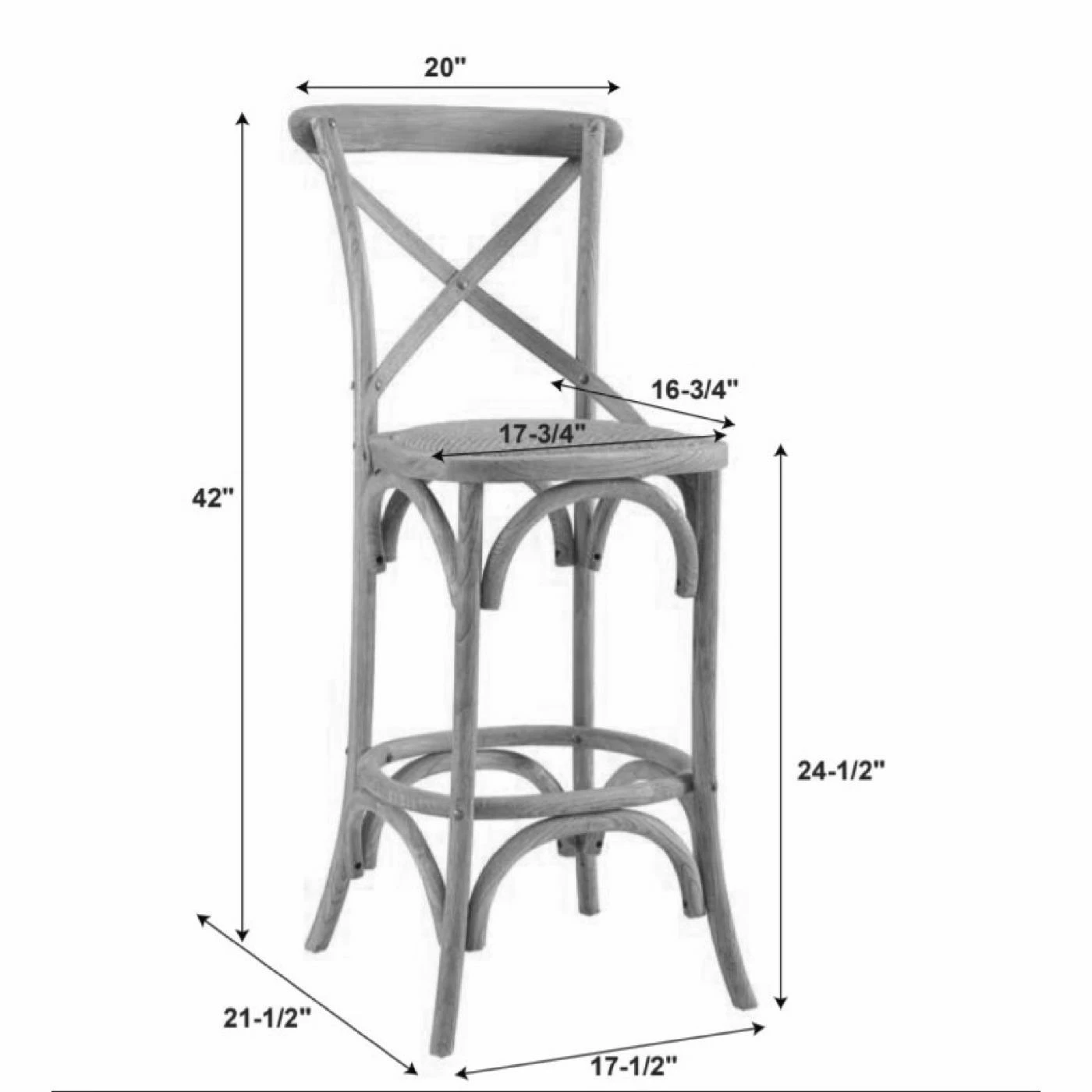 Add a vintage accent to your bar-height counter or table with the Linon Roxy 24.5 in. Counter Stool. The elm wood frame features curved details, an X-style backrest, and a washed gray finish. The seat is crafted from wicker-rattan for a natural look.