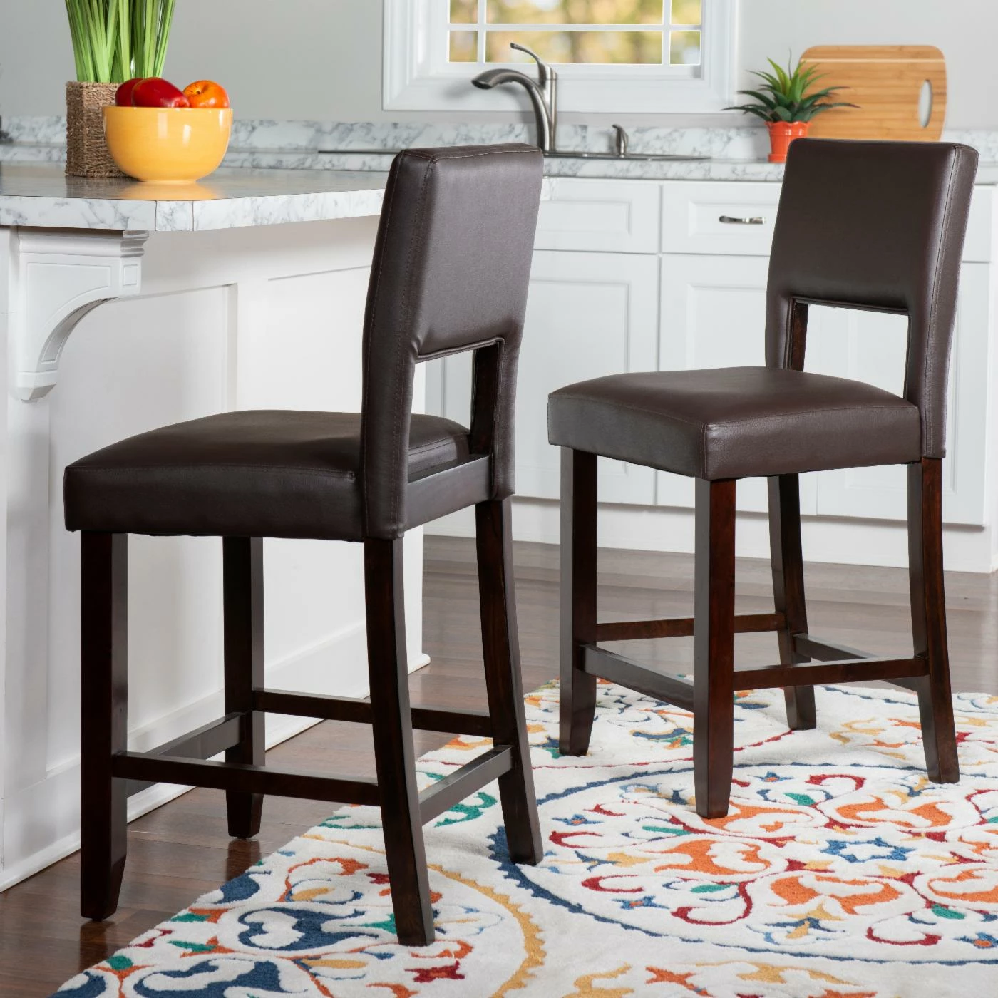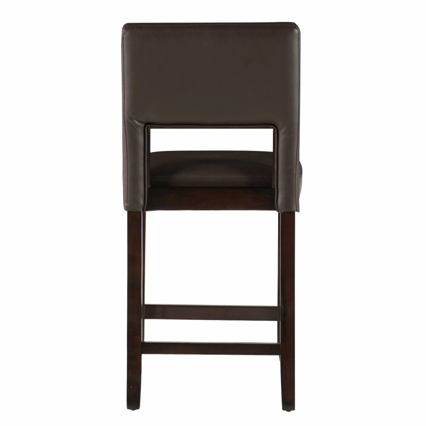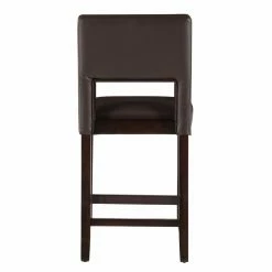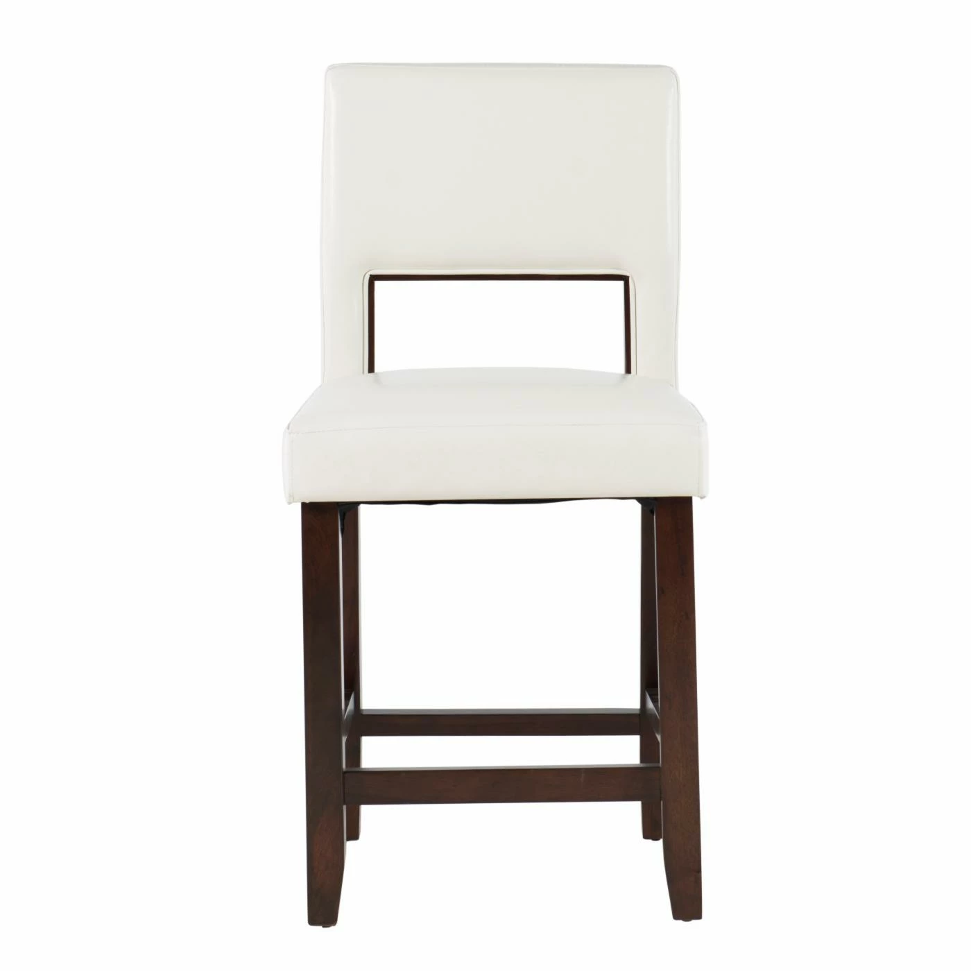 The Linon 24-Inch Vega Counter Stool features a rich, dark espresso finish. A natural fit for any setting, this stool also has a PVC vinyl-covered cushioned seat and backrest in your choice of dark brown or white colors. The legs are slightly tapered to create a more elegant profile, while the four foot rails provide enhanced stability and comfort. This stool is durable enough for busy kitchens, yet refined enough for more formal settings.