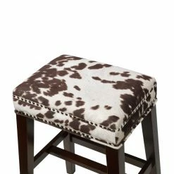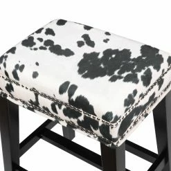 The Linon Walt Cow Print Backless Counter Stool lends your dining room, living room, or kitchen a robust rustic flair. This counter-height stool features a wide, backless seat padded with plenty of dense foam. Its frame is rendered from solid rubberwood with splayed legs. A decadent artificial leather fabric upholsters the piece, studded with a double border of nailheads. Select your preferred color options from the available.