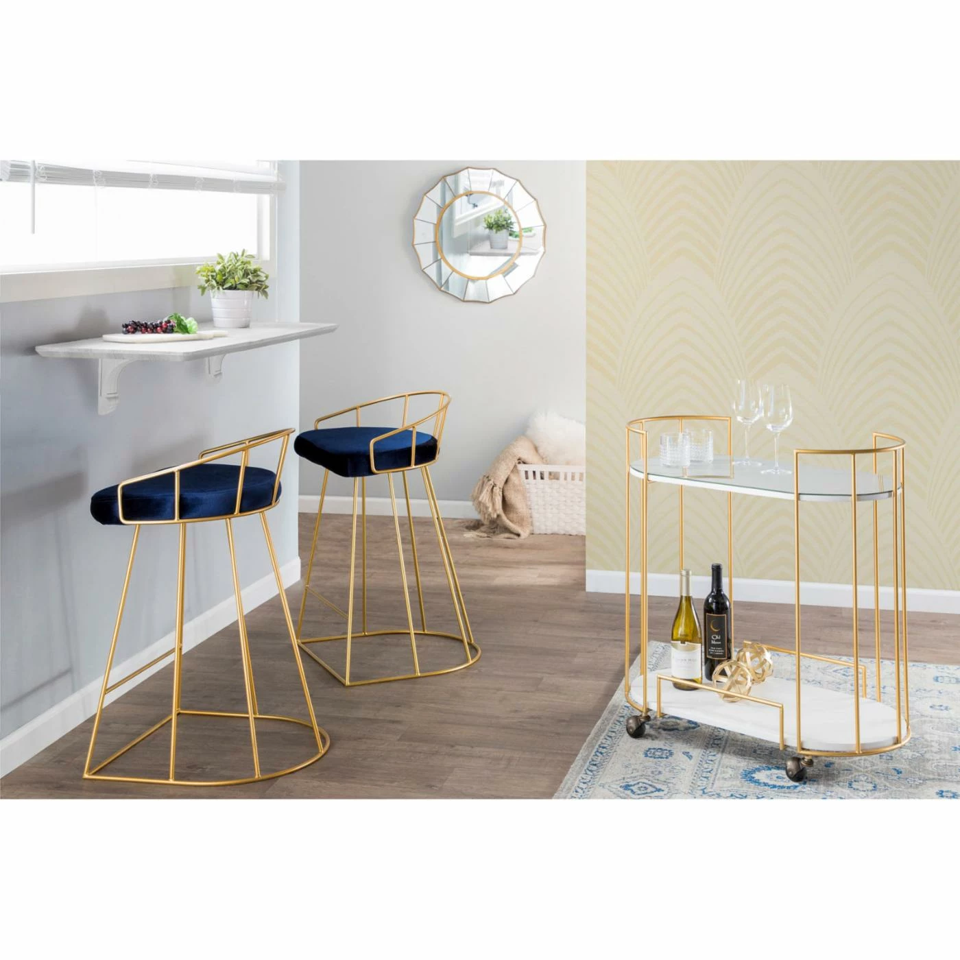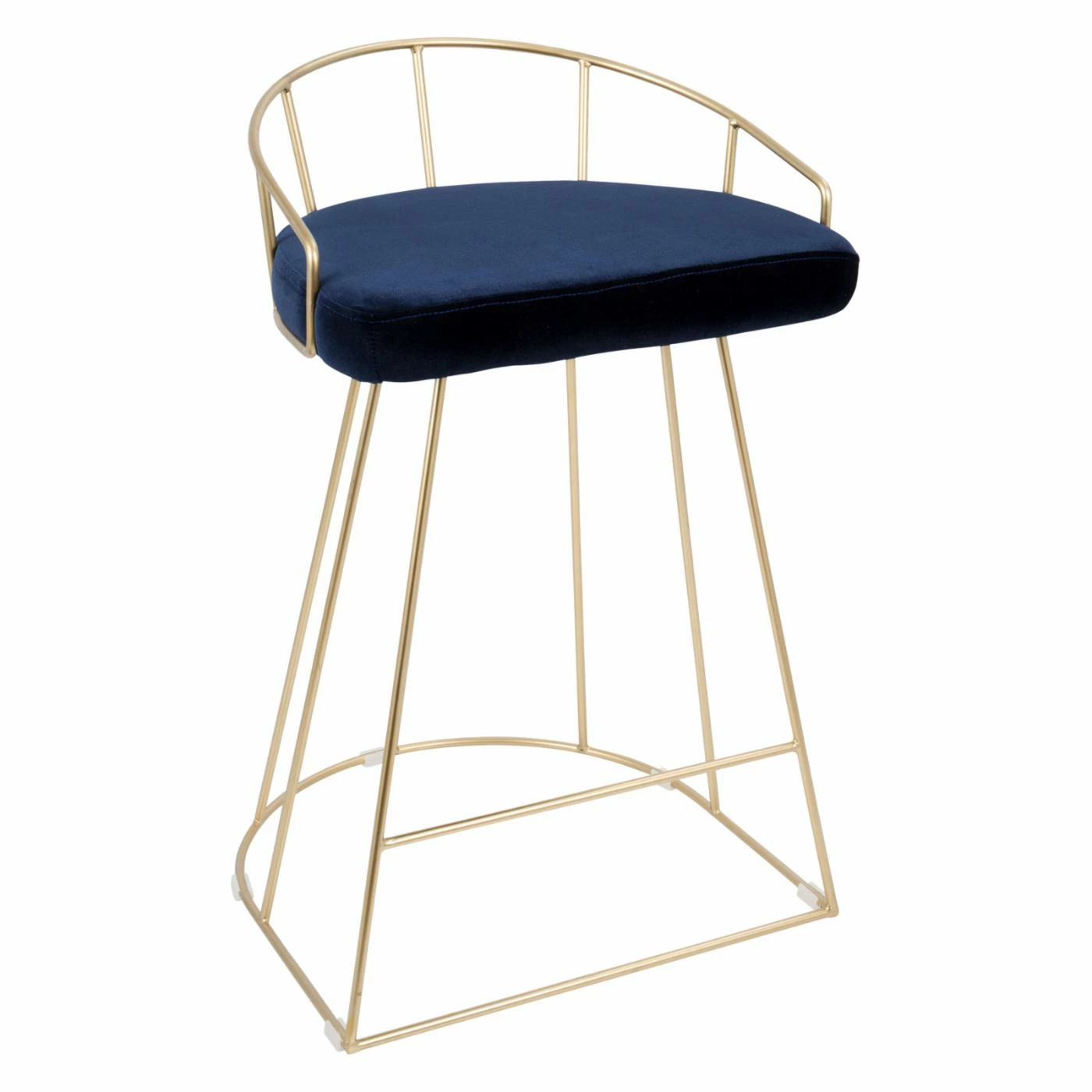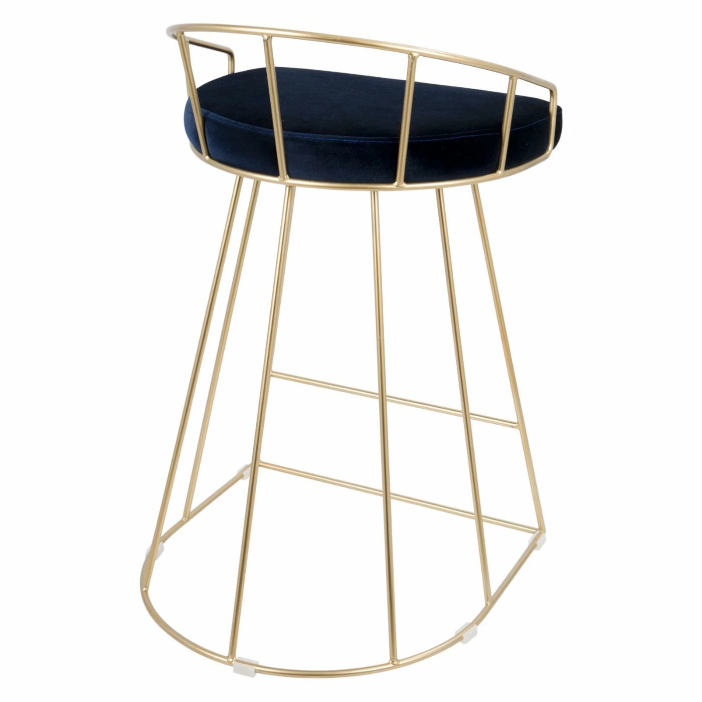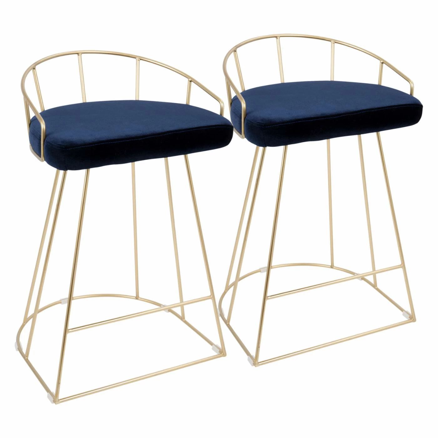 Contemporary and glamorous, the LumiSource Canary 26 in. Counter Stool – Set of 2 makes a stylish addition to your kitchen. This stool features a striking metal framework with a brushed gold finish. The plush seat is upholstered with velvet-mohair fabric in your choice of available colors. A single bar across the bottom offers a comfortable place to rest your feet.