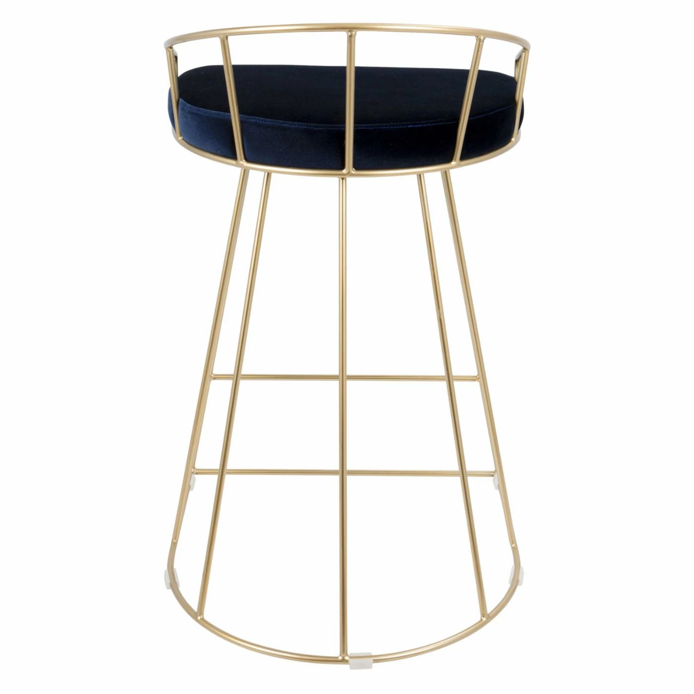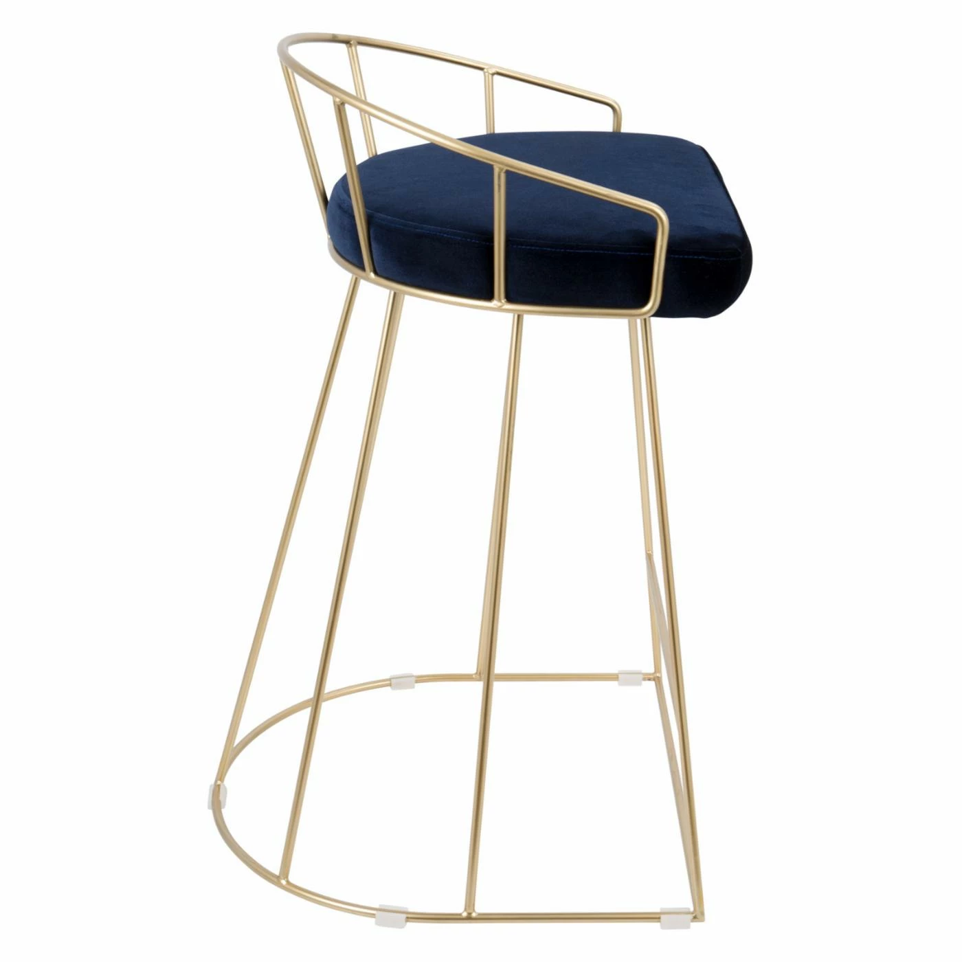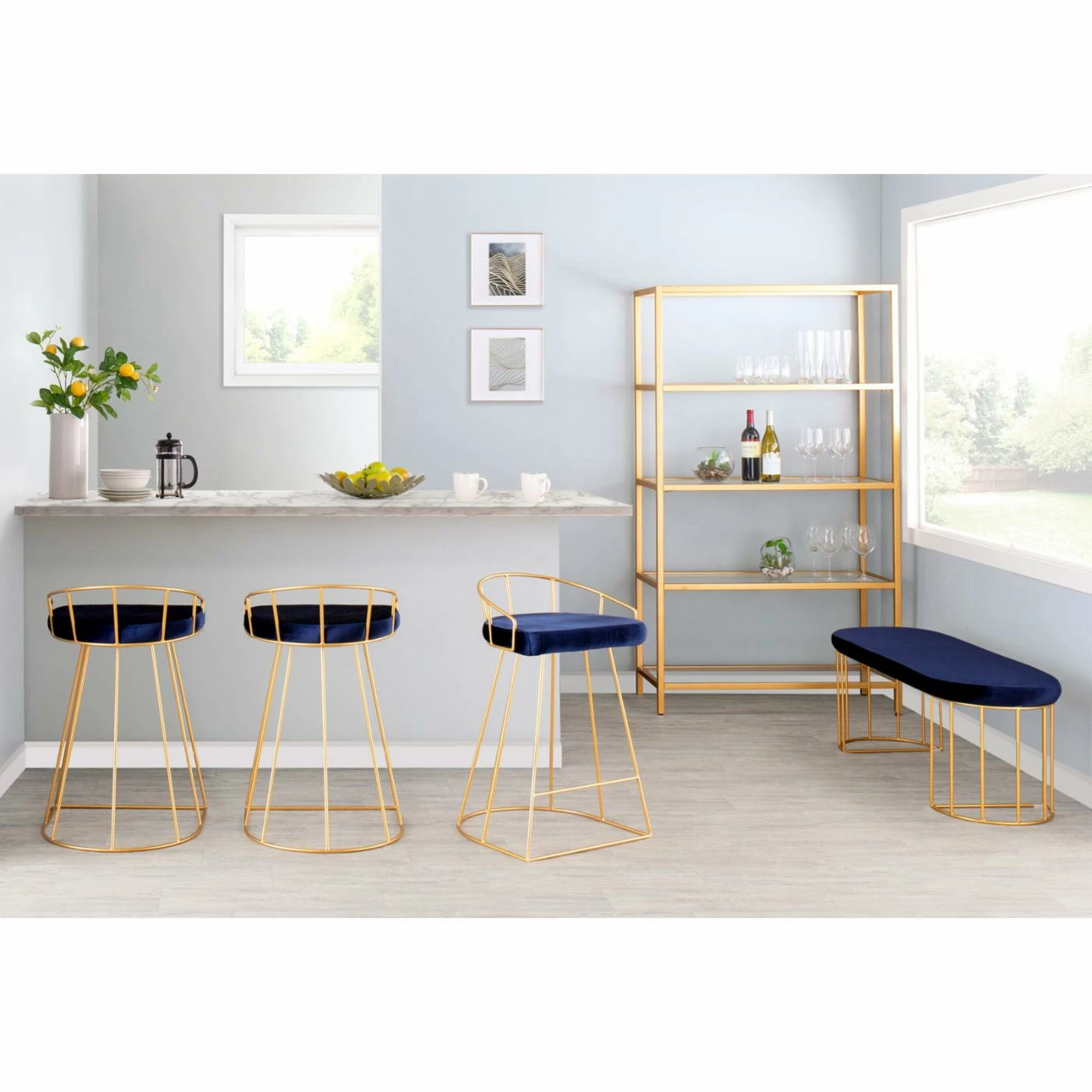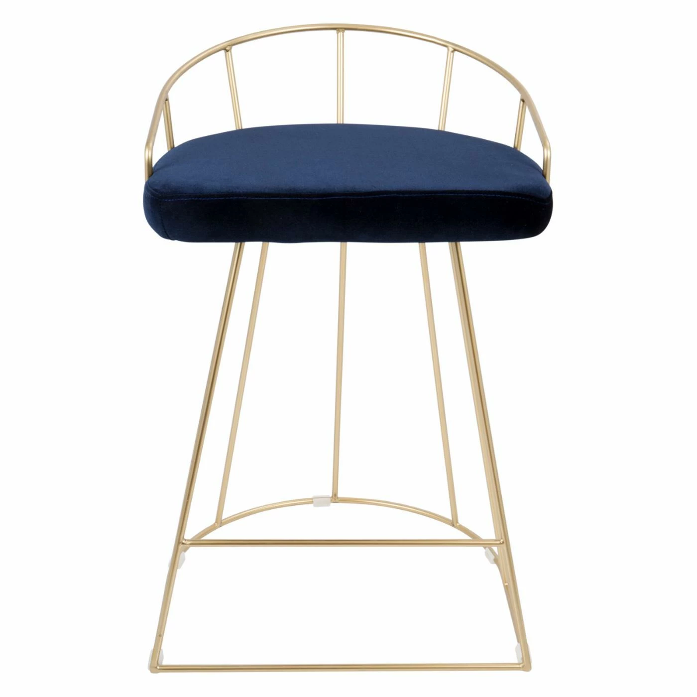 Contemporary and glamorous, the LumiSource Canary 26 in. Counter Stool – Set of 2 makes a stylish addition to your kitchen. This stool features a striking metal framework with a brushed gold finish. The plush seat is upholstered with velvet-mohair fabric in your choice of available colors. A single bar across the bottom offers a comfortable place to rest your feet.