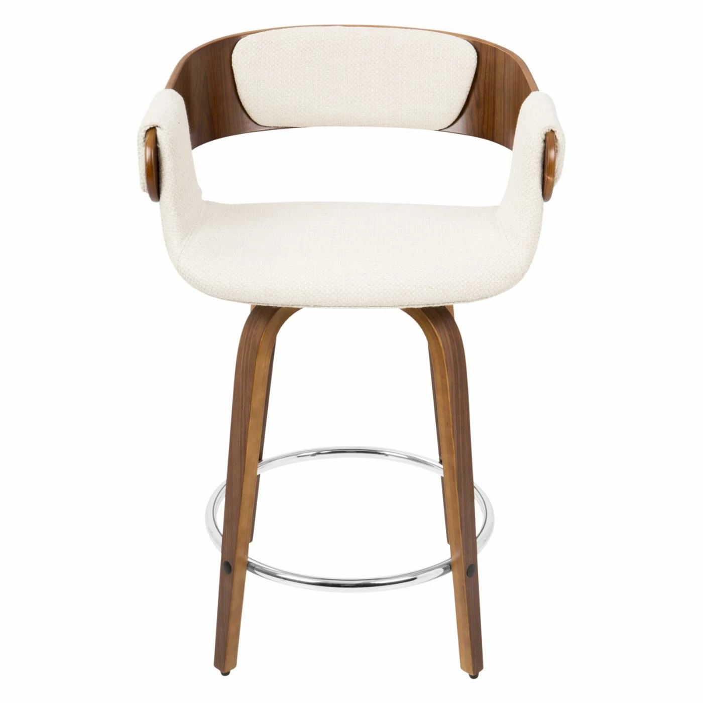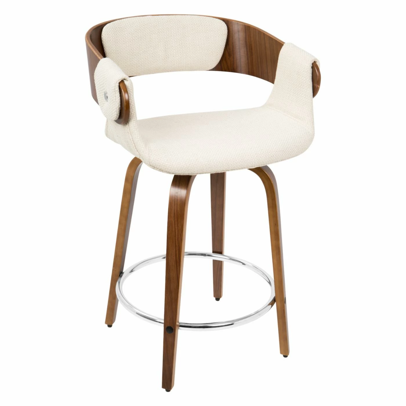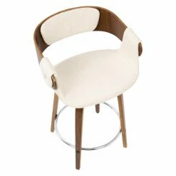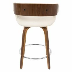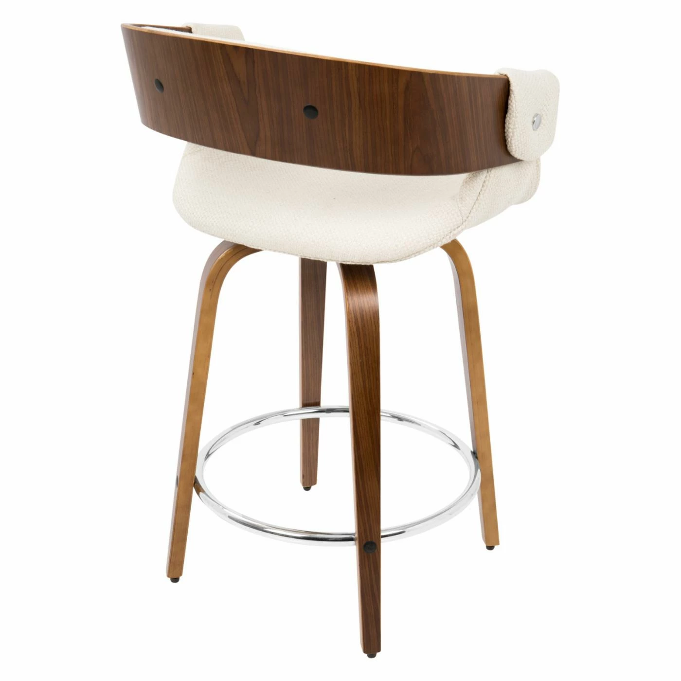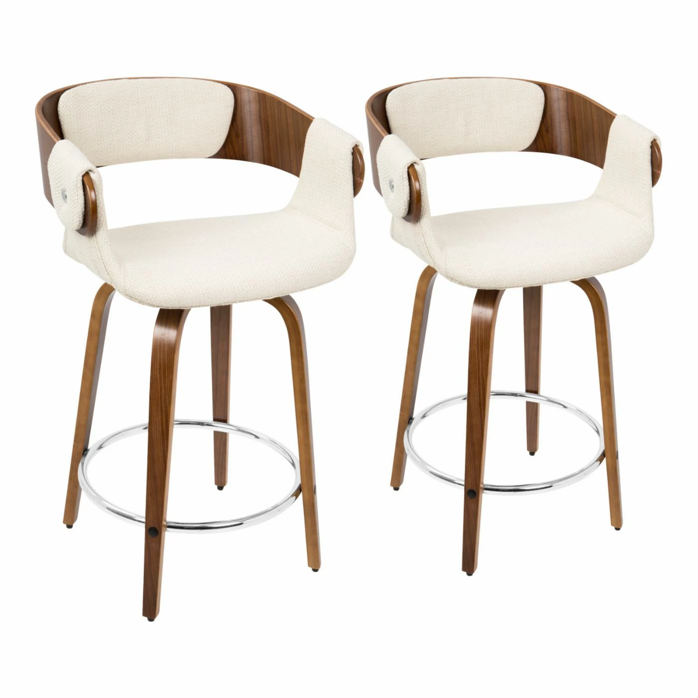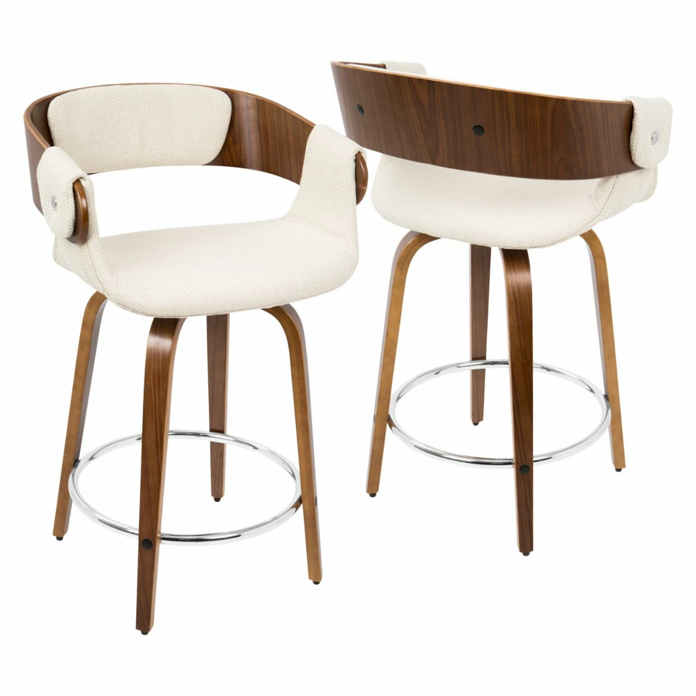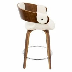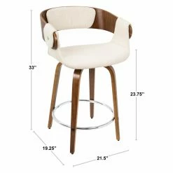 Bold contrasting colors and elegant minimalist lines makes the LumiSource Elisa 24 in. Solid Back Counter Stool – Set of 2 a welcome complement to your throwback dining room or living room. Two stools are included in this set. The frames are built from bent wood with a handsome walnut brown finish. Soft foam pads the seats, upholstered in your choice of available fabric. Each seat swivels fully. Polished chrome footrests unite the legs.