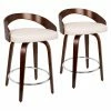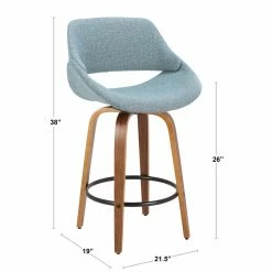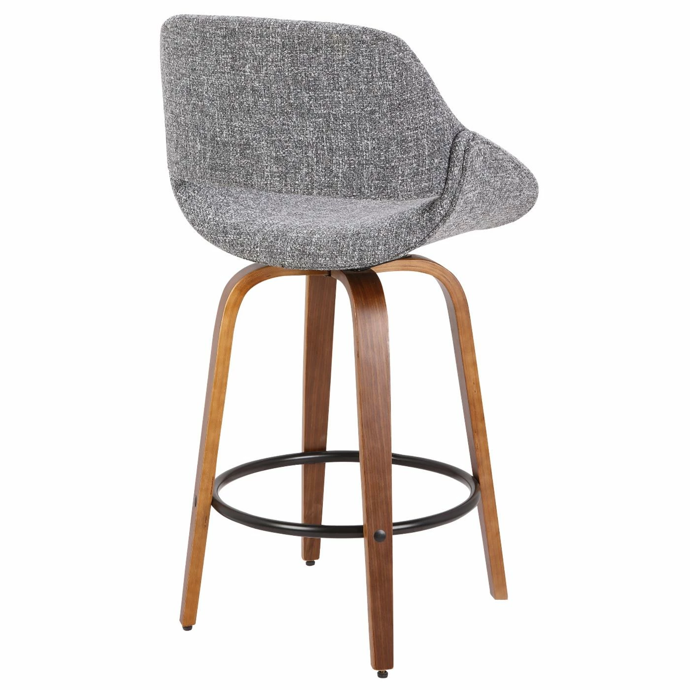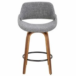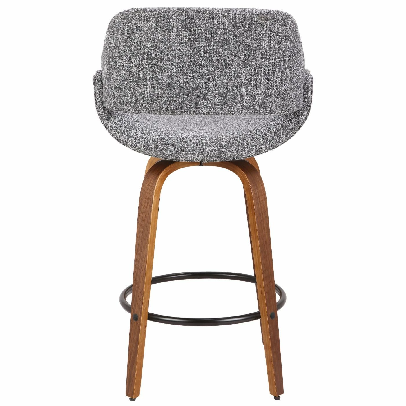 Enjoy sleek, contemporary style with the LumiSource Fabrico 25.5 in. Mid-Century Modern Counter Stool – Set of 2. Each counter stool features walnut legs with a metal ring footrest. The curved seat back features an open design. Upholstered in soft polyester, these stools are chic and comfortable. Choose from available fabric colors to find the LumiSource Fabrico 25.5 in. Mid-Century Modern Counter Stool – Set of 2 that works best for your kitchen or dining room.