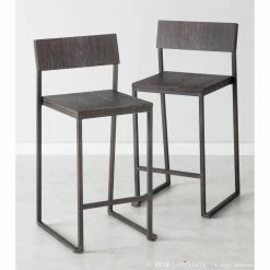 Elevate the style of your dining room or kitchen with the LumiSource Fuji 26.25 in. Industrial Counter Stool – Set of 2. Each stool features a painted steel frame in a silver finish. The seats and backs are made of bamboo in an espresso brown finish. These armless counter stools have a low back and comfortable footrest. Some assembly is required.
