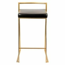 Update the look of your casual sitting area with the LumiSource Fuji 27 in. Contemporary Counter Stool – Set of 2. These counter stools are supported by metal frames with a brushed gold finish. Plush seats and a straight footrest elevate the comfort of these stools. The seats are covered with polyurethane leather in your choice of available colors. When you aren’t using these stools, stack them for convenient storage.