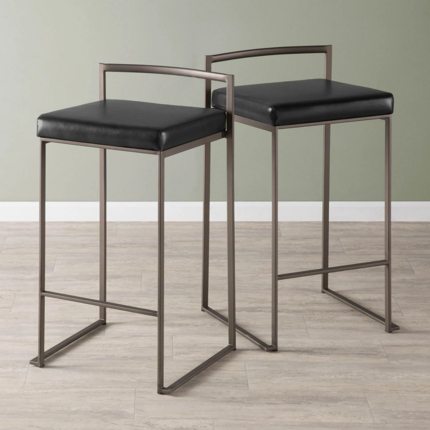 TheΒ LumiSource Fuji 27 in. Stackable Faux Leather Counter Stool – Set of 2 is ideal for homes with limited space. This set includes two matching stools with a stackable design for saving space when theyβre not in use. The low back and faux leather cushion ensure lasting comfort. Choose from available colors to get the right look for your home.