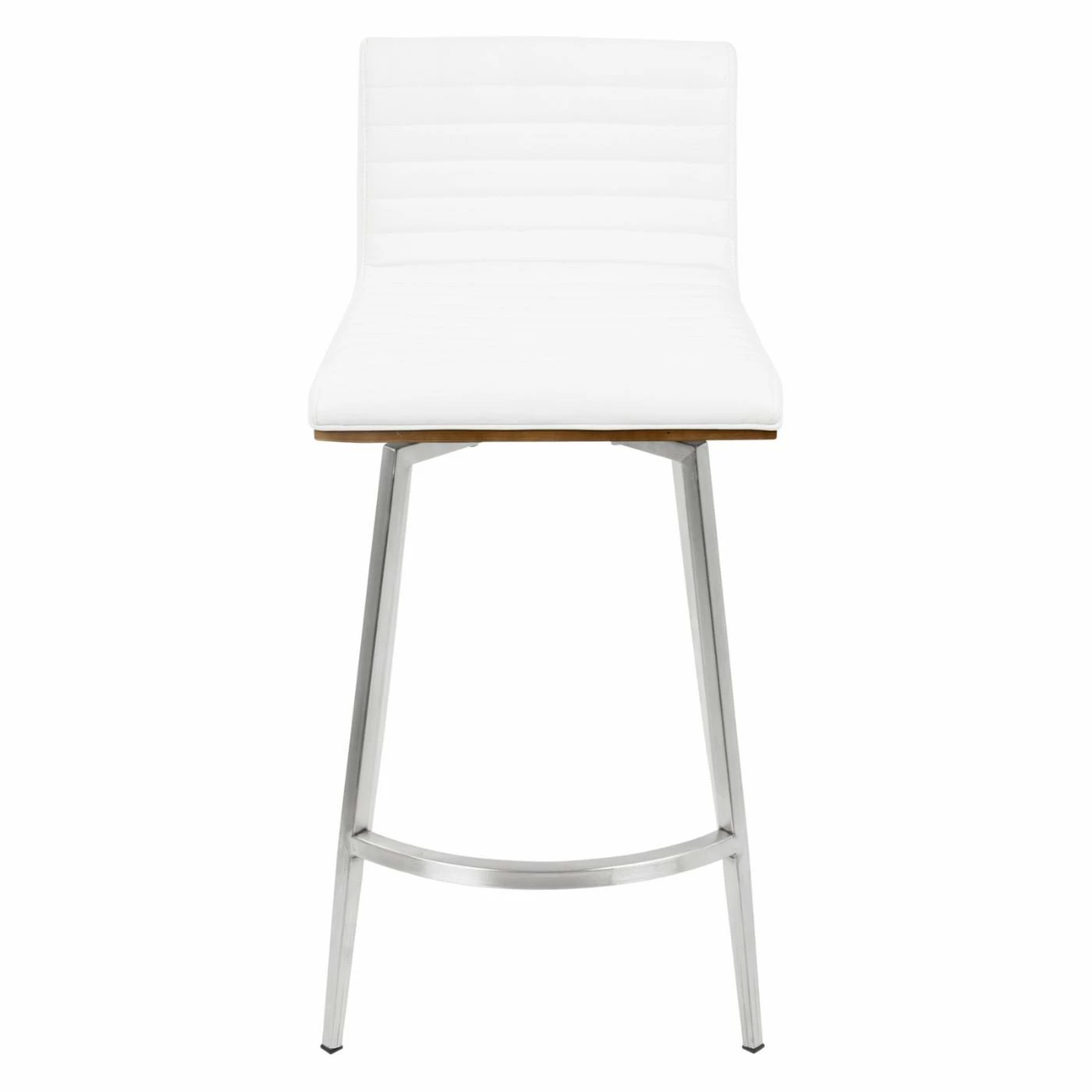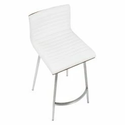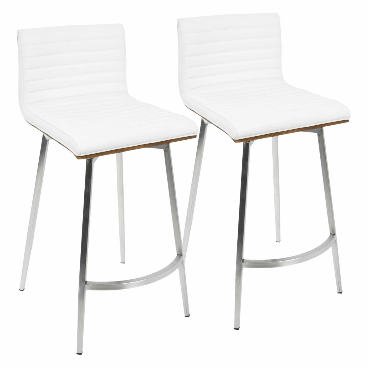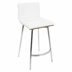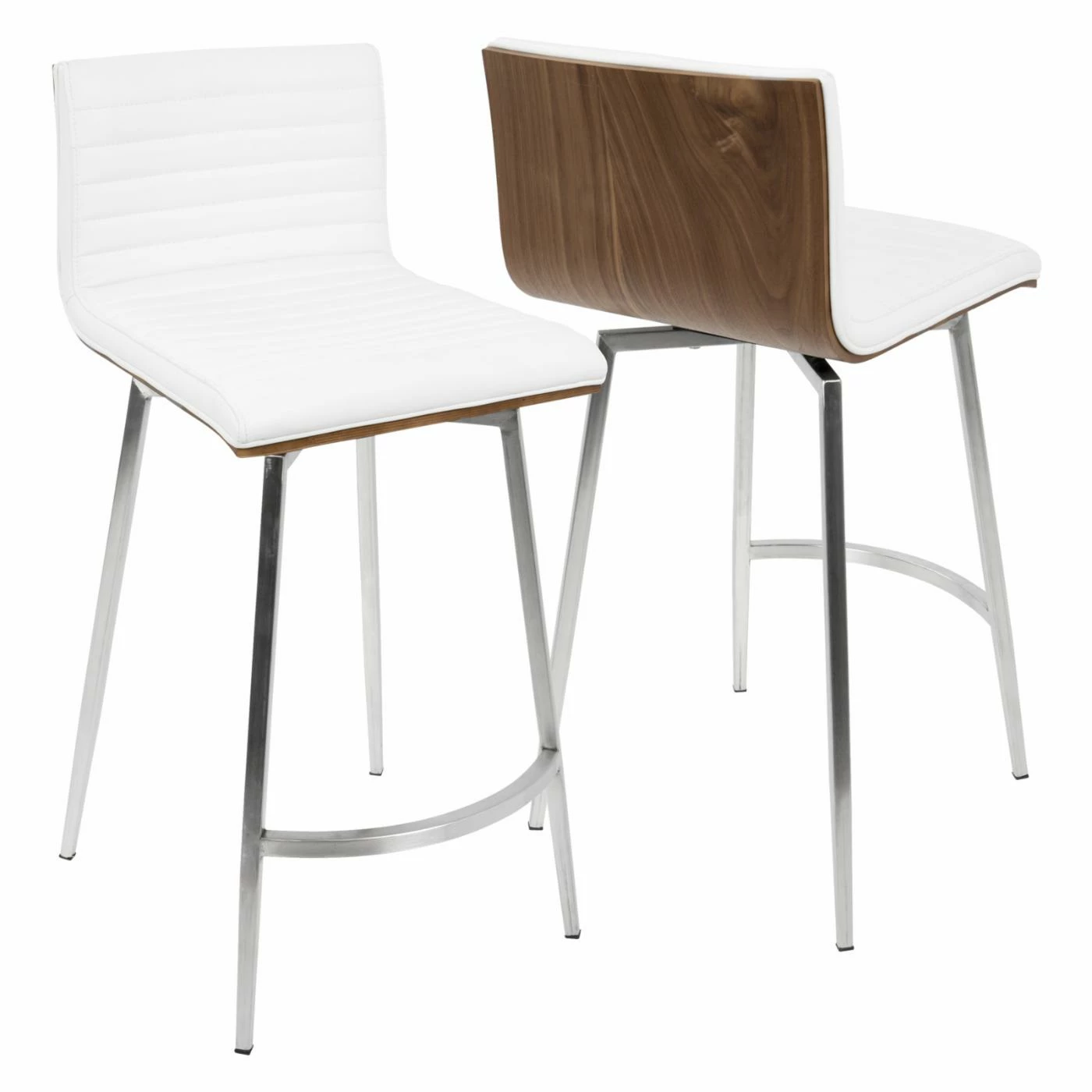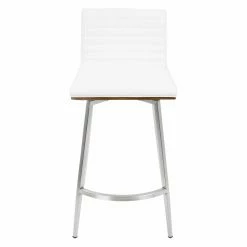 Sleek and simple meet comfortable design in the LumiSource Mason 24.5 in. Faux Leather Swivel Counter Stool – Set of 2. Boasting a solid walnut wood back, each seat is upholstered in tufted PU leather in your choice of available color. The stainless base supports the swivel seat, ensuring many years of enjoyment in your contemporary living space.