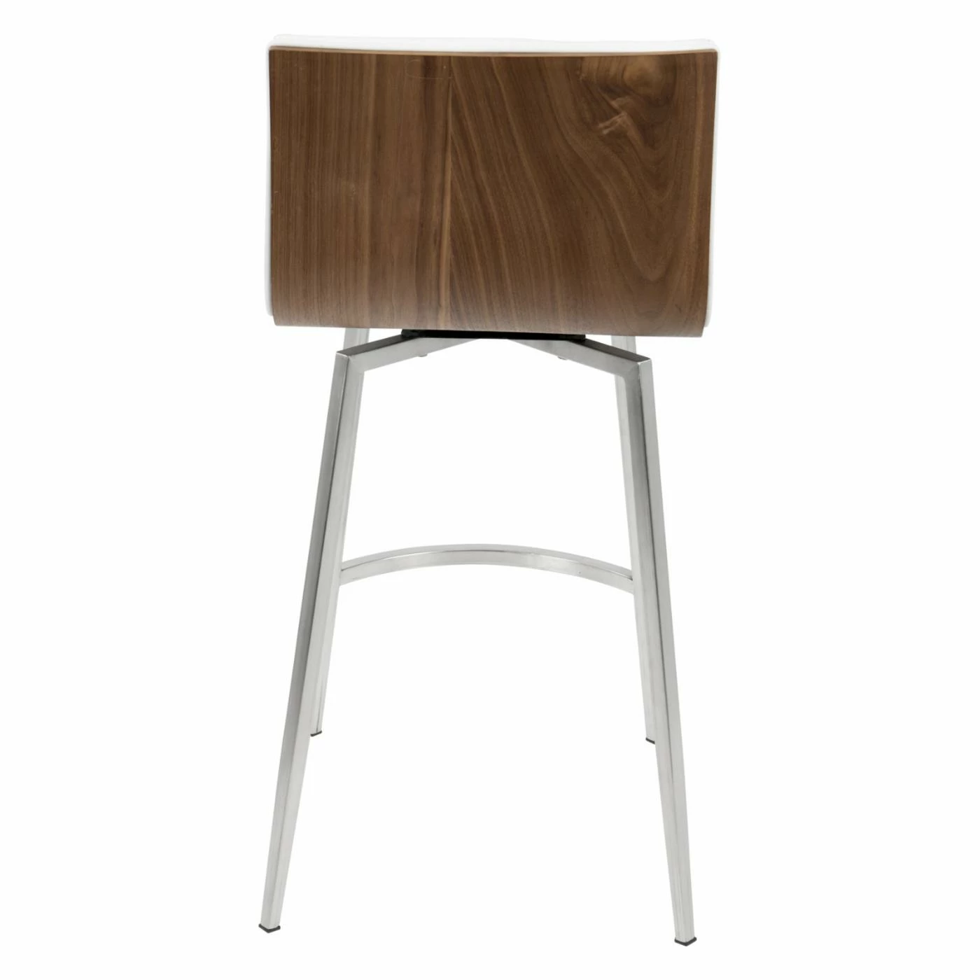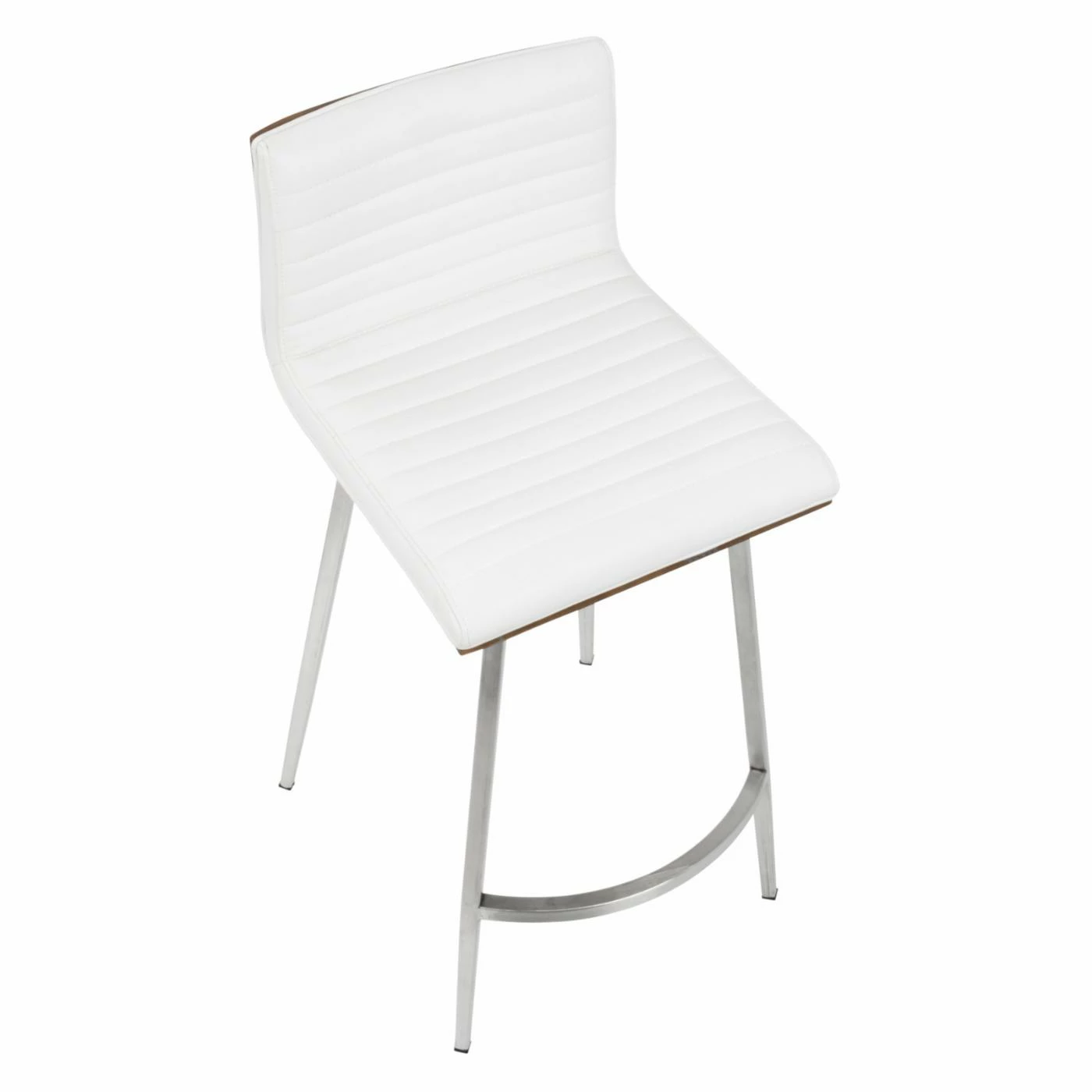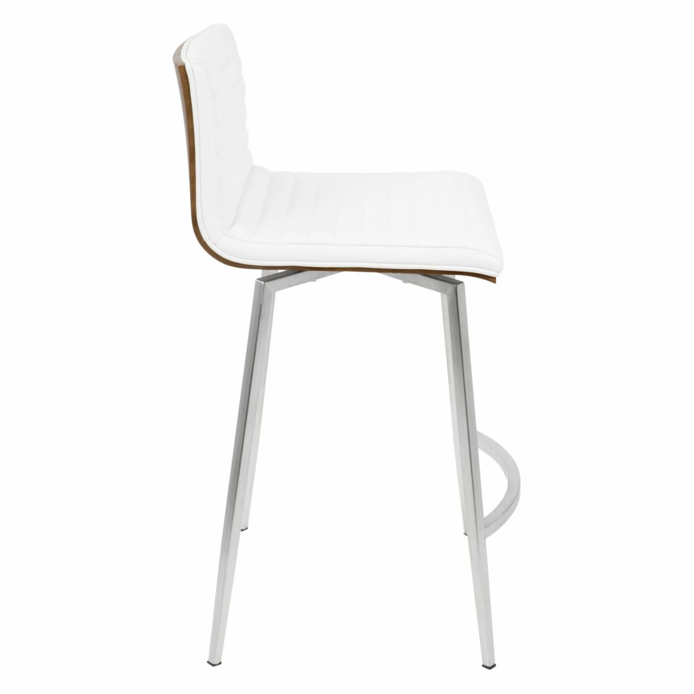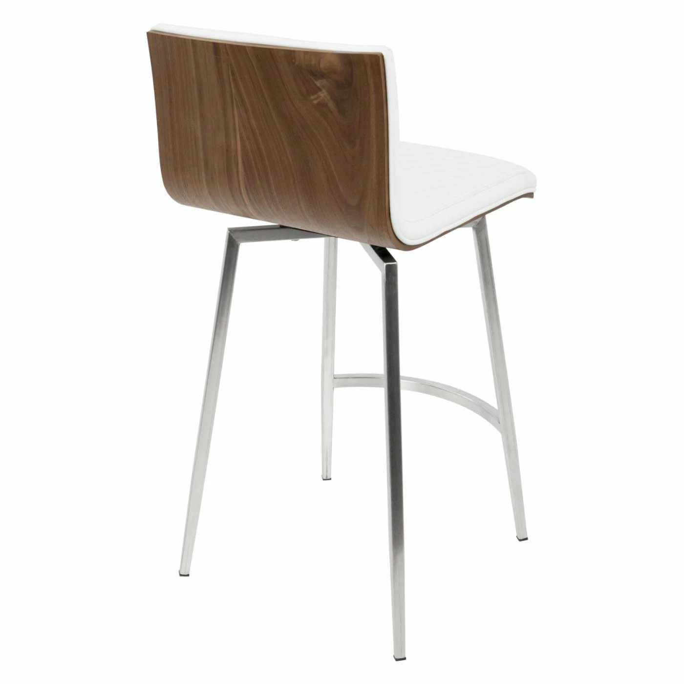 Sleek and simple meet comfortable design in the LumiSource Mason 24.5 in. Faux Leather Swivel Counter Stool – Set of 2. Boasting a solid walnut wood back, each seat is upholstered in tufted PU leather in your choice of available color. The stainless base supports the swivel seat, ensuring many years of enjoyment in your contemporary living space.