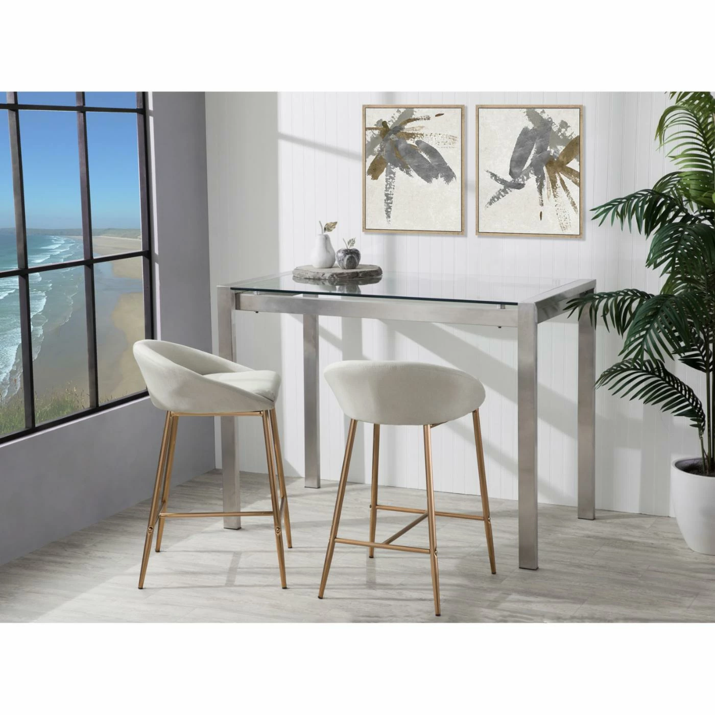 Make a contemporary statement with the LumiSource Matisse 26 in. Counter Stool – Set of 2. Featuring a distinct, trestle-style metal base, this set of two counter stools can be customized with your choice of available metal finishes and upholstery colors. The low-back curved seats offer comfort and support without sacrificing style in your modern space.